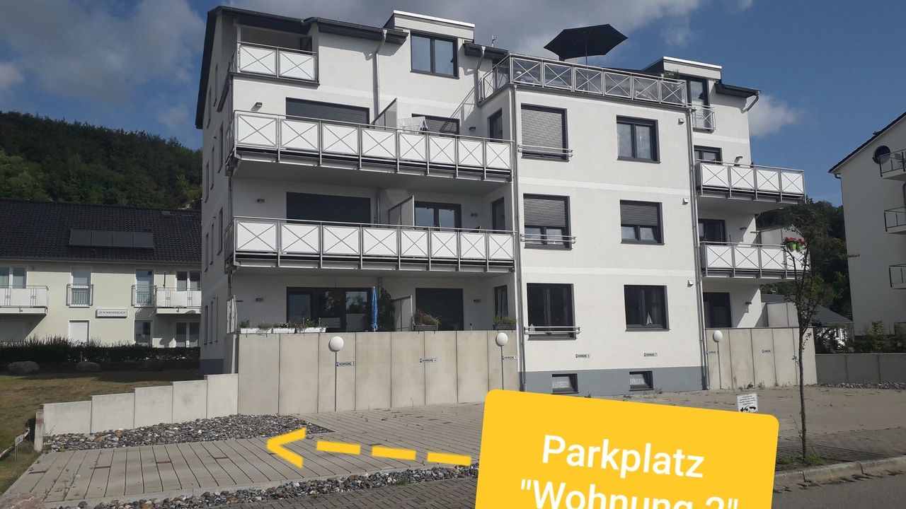 Direkt am Gebäude ist der Parkplatz "Wohnung 2" für Sie reserviert.