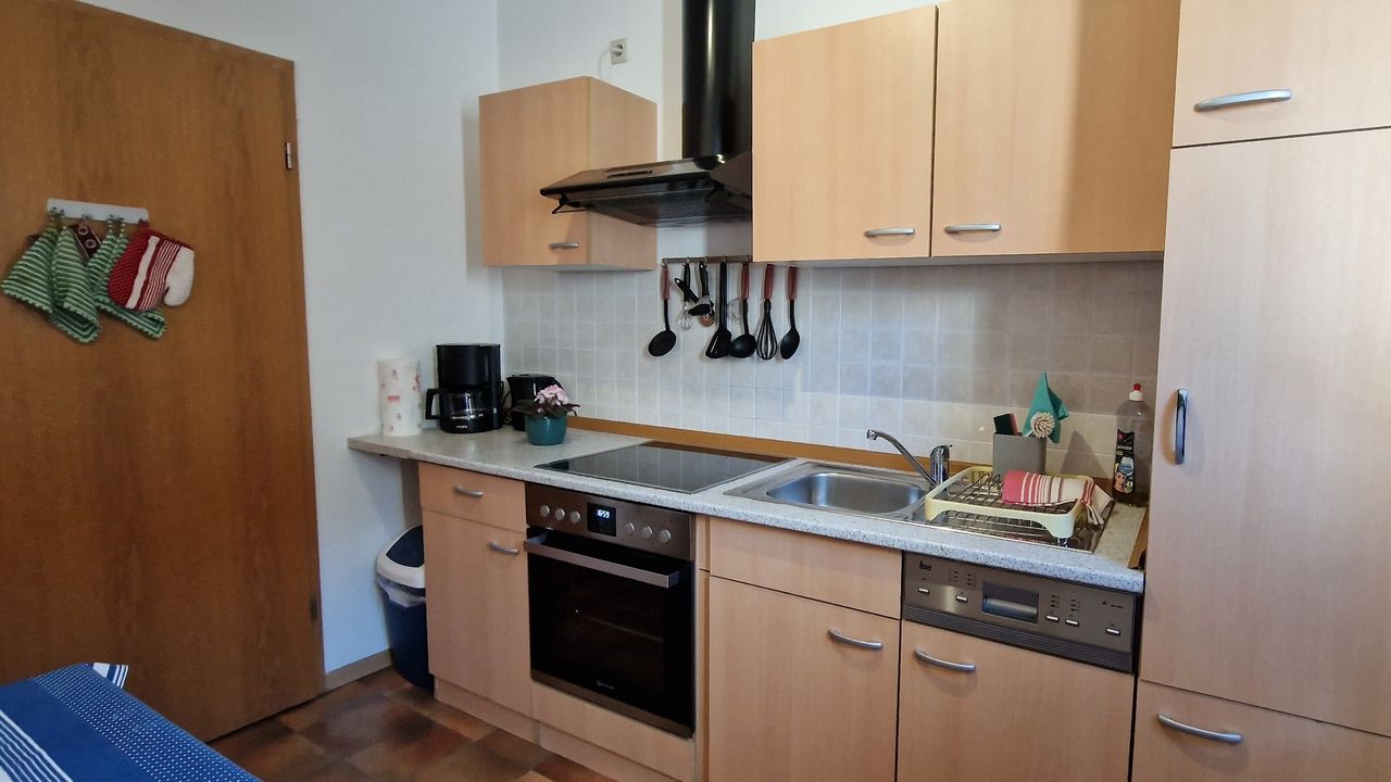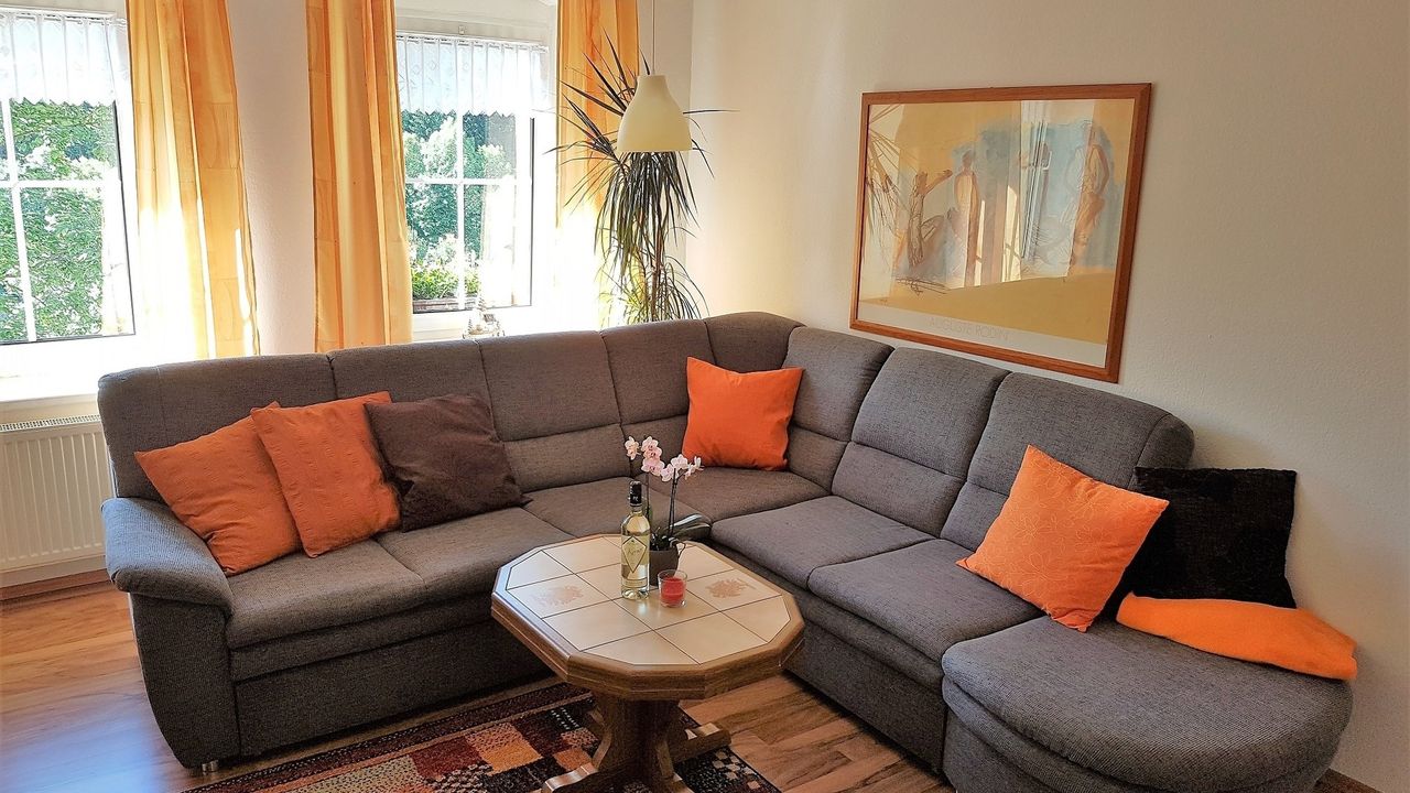 Unsere große Ferienwohnung hat 61 qm und befindet sich auf der 2. Etage unseres privaten Hauses. Sie ist hell und freundlich eingerichtet. 2 Schlafzimmer mit je 2 Betten, ein Wohnzimmer ( 1 Aufbettung möglich), eine komplett eingerichtete Küche mit Essecke und ein Bad mit Badewanne warten auf Sie. Auch für den kleinen Durst ist im Haus gesorgt. Fürs Frühstück können Sie unseren Brötchenservice samstags und sonntags nutzen.