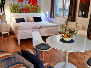 Die Ausstattung des Apartment " Nordstern " lässt keine Wünsche offen. Das Apartment verfügt über ein Doppelbett im Wohn- Schlafbereich 180 x 200 cm und ein Einzelbett im einer separaten Schlafnische 100 x200 cm . Eine gemütliche Sitzgruppe für 3 Personen sowie eine Anrichte mit Satelliten TV runden den Wohnbereich ab.