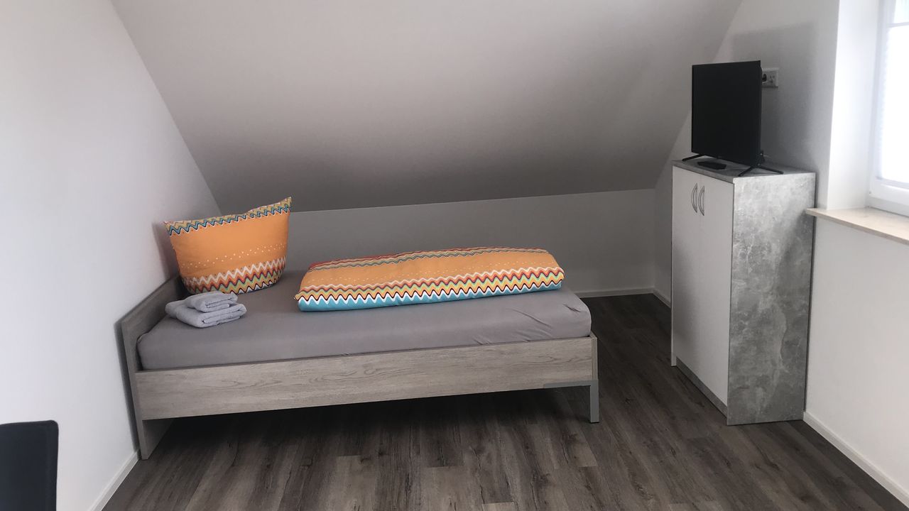 Die 85 qm große Ferienwohnung befindet sich im Dachgeschoss. Vier Schlafzimmer mit Einzelbetten Größe 120 cm ermöglichen Aufenthalte für bis zu vier Personen. Ein Zustellbett ist möglich in den Zimmern. Es erwartet Sie eine helle, saubere Wohnung mit großzügiger, komplett ausgestatteter Wohnküche. Die Küche verfügt über Geschirrspüler, Kaffeemaschine, Wasserkocher, Kühlschrank, Mikrowelle, Geschirr, Tisch- und Küchenwäsche, etc. In der Wohnung ist ein Badezimmer mit Dusche und WC. Handtücher und Bettwäsche werden kostenfrei gestellt. Zudem ist ein zweites separates WC vorhanden. Auf Anfrage kann Wäsche gewaschen werden. Alle unsere Wohnungen sind Nichtraucherwohnungen. Im Hof befindet sich eine Raucherecke. Parkplätze sind im Hof vorhanden.Beschreibung der Unterkunft
