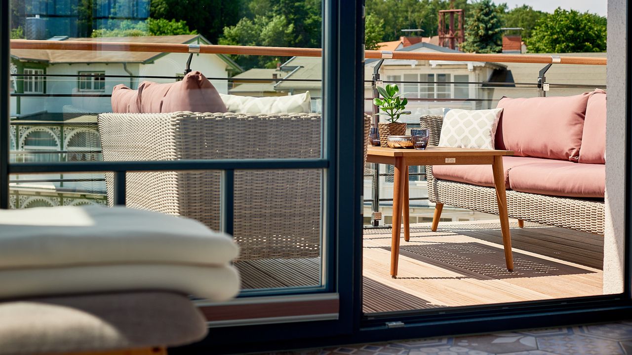 Dachgeschoss: Doppelbett, großer Schrank, Smart-TV, Whirlpool, 40 m² Dachterrasse mit Sonnenliegen