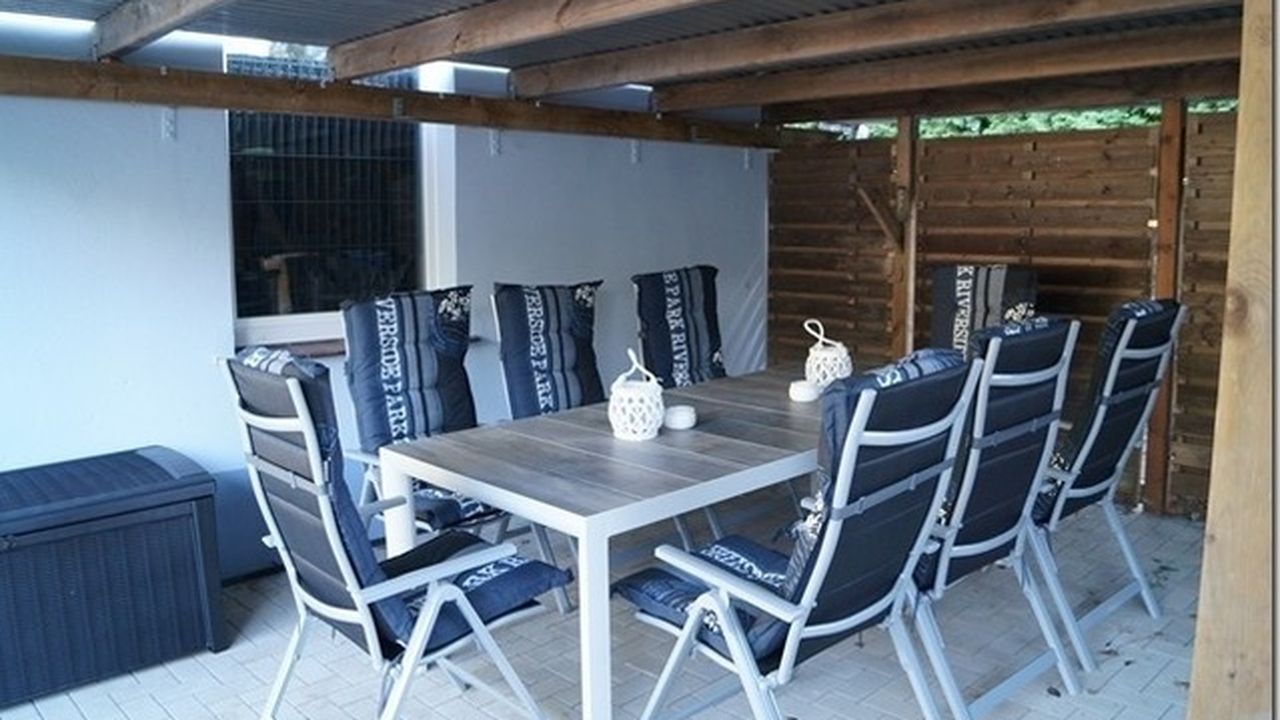 - großer Tisch mit 8 Stühlen inkl. Auflagen