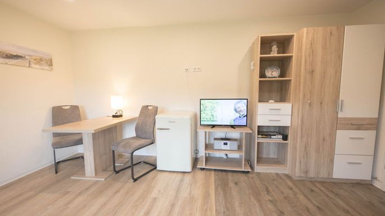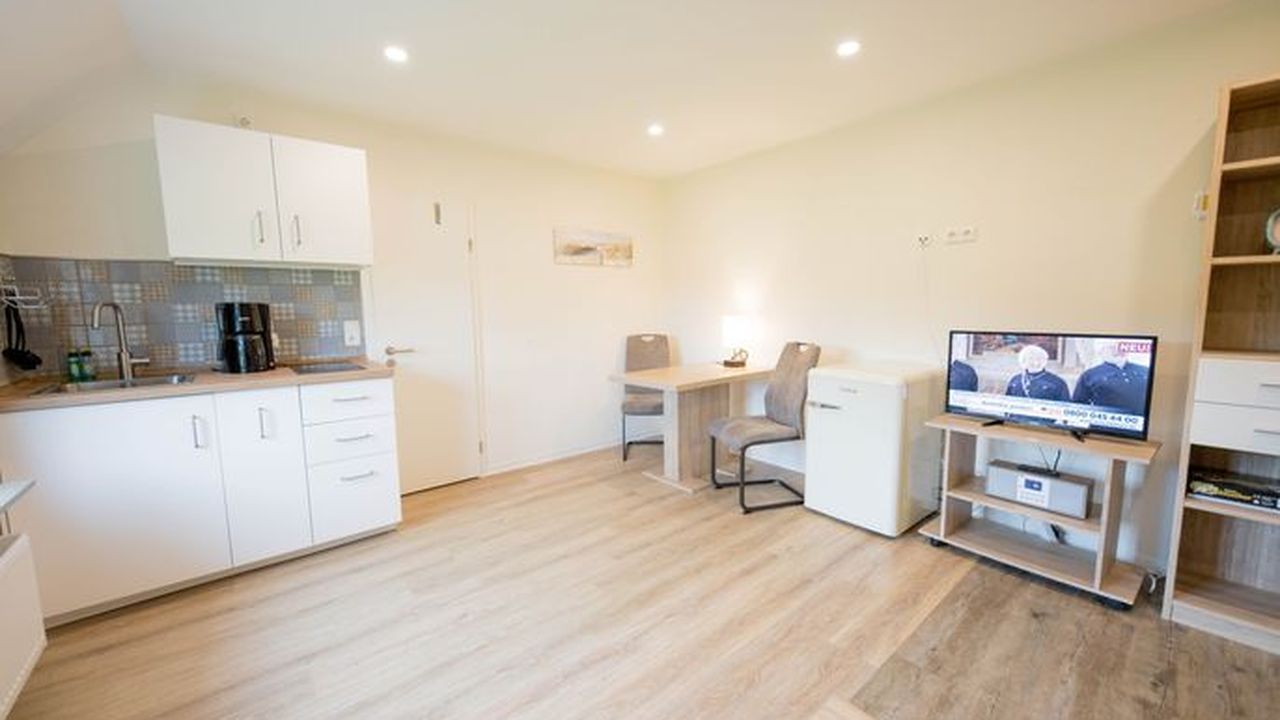 Das Appartement Juist ist ein Einraum-Appartment mit einem kombinierten Wohn-und Schlafraum mit Schlafsofa und Essplatz und einer integrierten offenen Pantryküche. Dem Zimmer schließt sich ein Tageslichtbad mit Dusche und WC an.Sonstiges