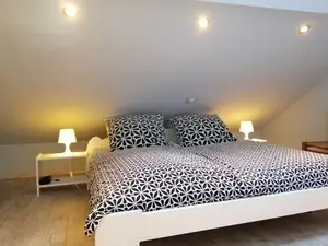 Das Reihenendhaus verfügt im Erdgeschoß über ein Schlafzimmer mit französischen Bett, 1 Galerie - Schlafzimmer in der ersten Etage mit Doppelbett, das über eine Raumspartreppe zu erreichen ist, sowie ein Schlafzimmer mit Schlafsofa. Das Wohnzimmer verfügt über einen Essplatz. Die Küche schließt sich dem Wohnzimmer an.Sonstiges