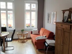 Zusätzlich zu den 2 Doppelbetten kann das Sofa im Wohnzimmer mühelos zu einem komfortablen Doppelbett ausgezogen werden. Im Wannenbad (1. Etage) sowie im Duschbad (Erdgeschoss) gibt es je ein WC.Genießen Sie vom Wohnzimmer aus den Blick auf den Stadtgraben oder - zur anderen Seite, von der Terrasse aus, - den Blick auf die benachbarten Hinterhöfe. Hier ist es herrlich ruhig.