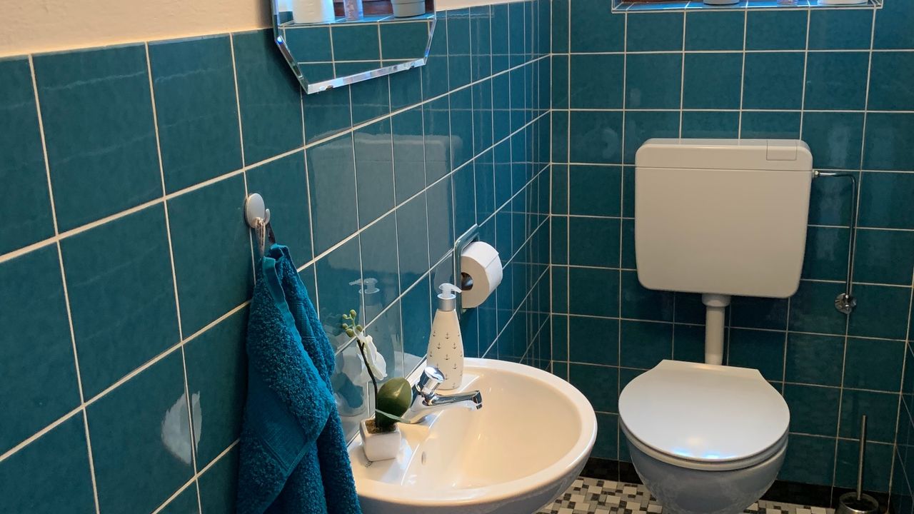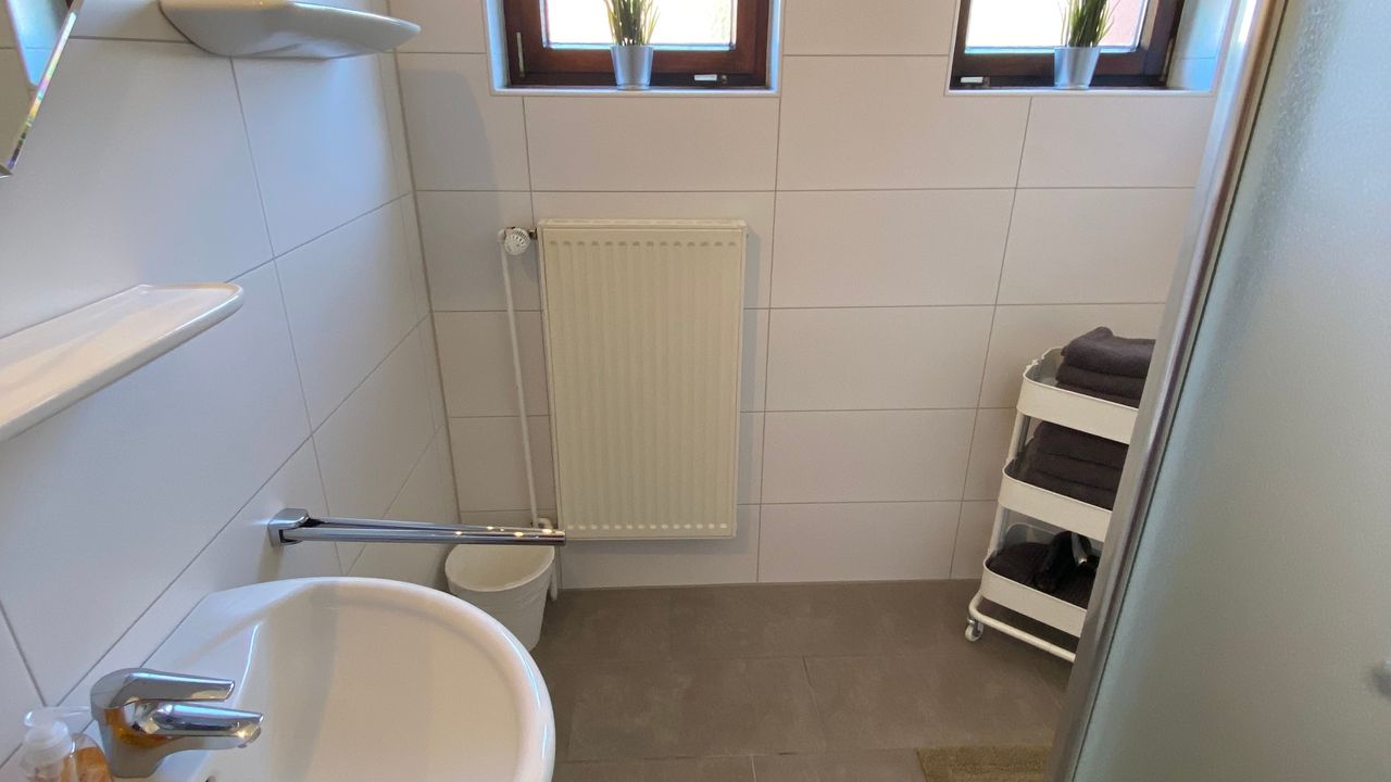 Bad: schickes, neu renoviertes Bad mit bodengleicher Dusche.