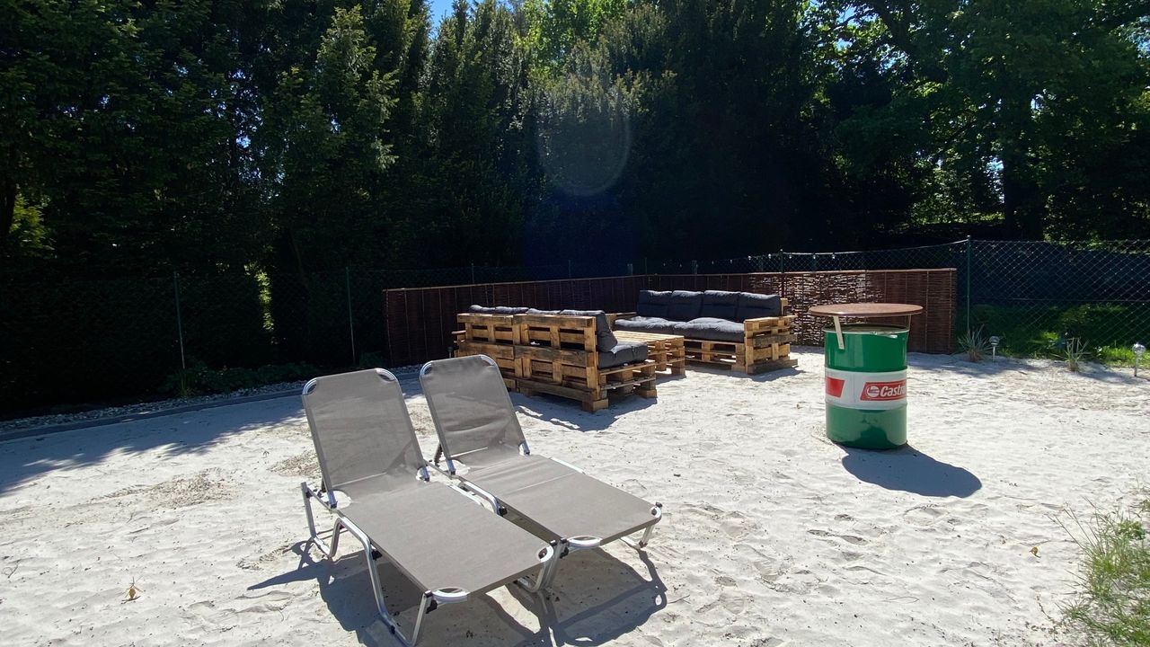Zu unserer gepflegten FeWo "Brazil" gehört ein ca. 400 m² großer, durch Zaun abgeschlossenes Gartengrundstück mit Baumbestand und großer Rasenfläche. Ein 90qm großer Strandbereich ist wunderbar zum entspannen.