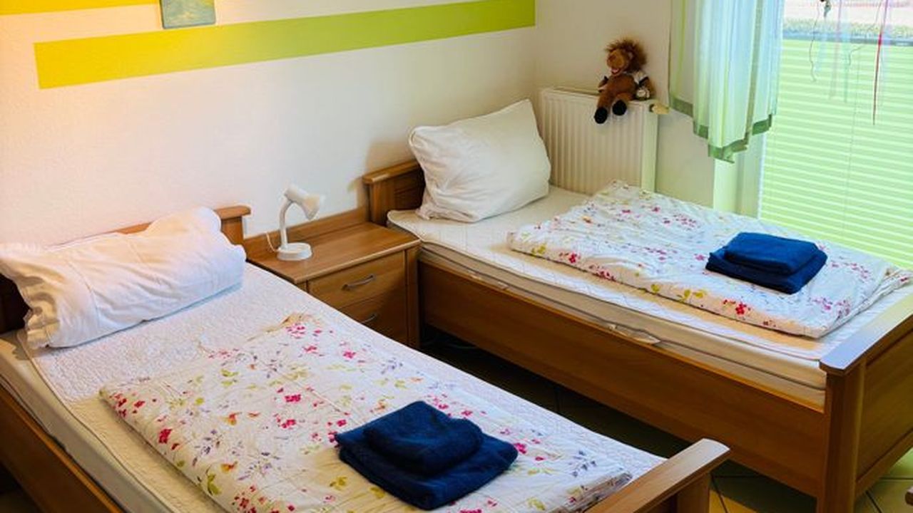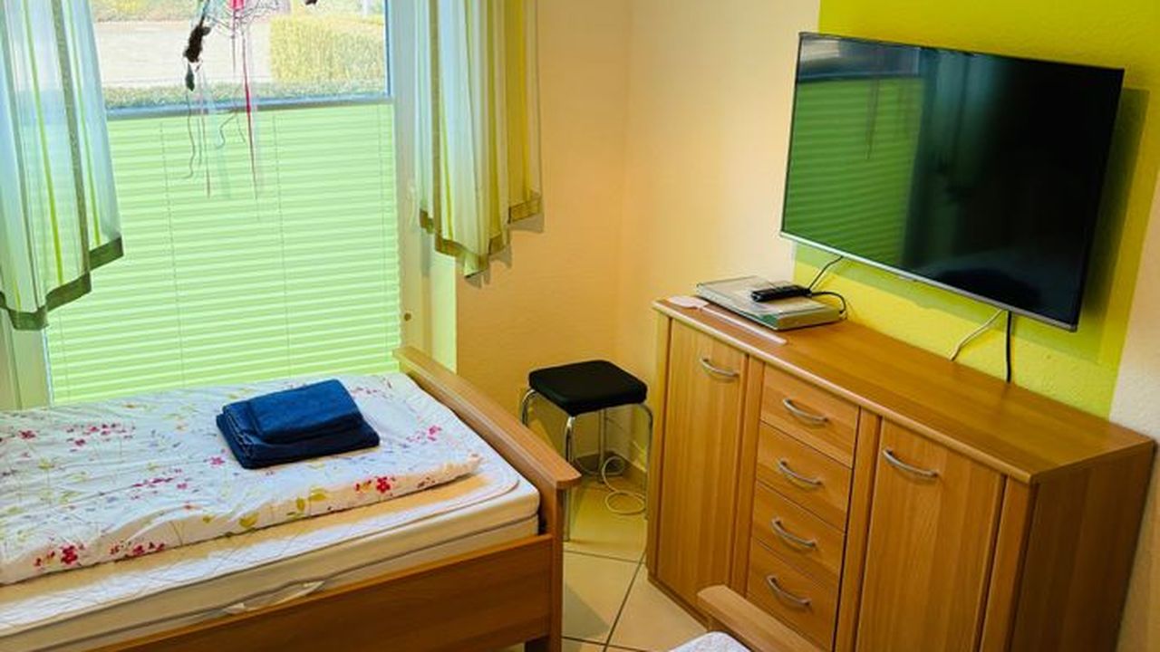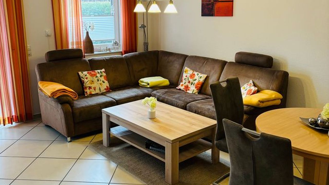 Die großzügige Wohnküche, ausgestattet mit einem TV und einem einladenden Essbereich, lädt zu gemeinsamen Mahlzeiten ein. Das Doppelzimmer sowie das Zwei-Bett-Zimmer mit eigenem Fernseher bieten einen komfortablen Rückzugsort. Das moderne Duschbad, der Flur und der praktische Abstellraum runden das Angebot ab. Ein Kinderreisebett steht ebenfalls zur Verfügung.