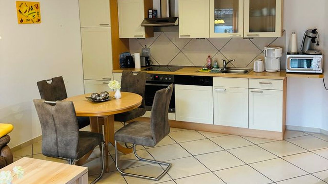 • Komfortable Küchenausstattung: Cerankochfeld, Backofen, Kühlschrank, Spülmaschine, Kaffeemaschine, Toaster, Warmwasserbereiter, umfangreiches Geschirr