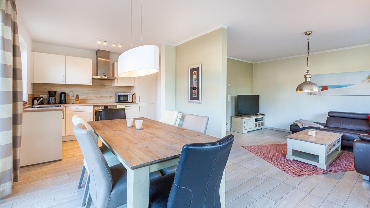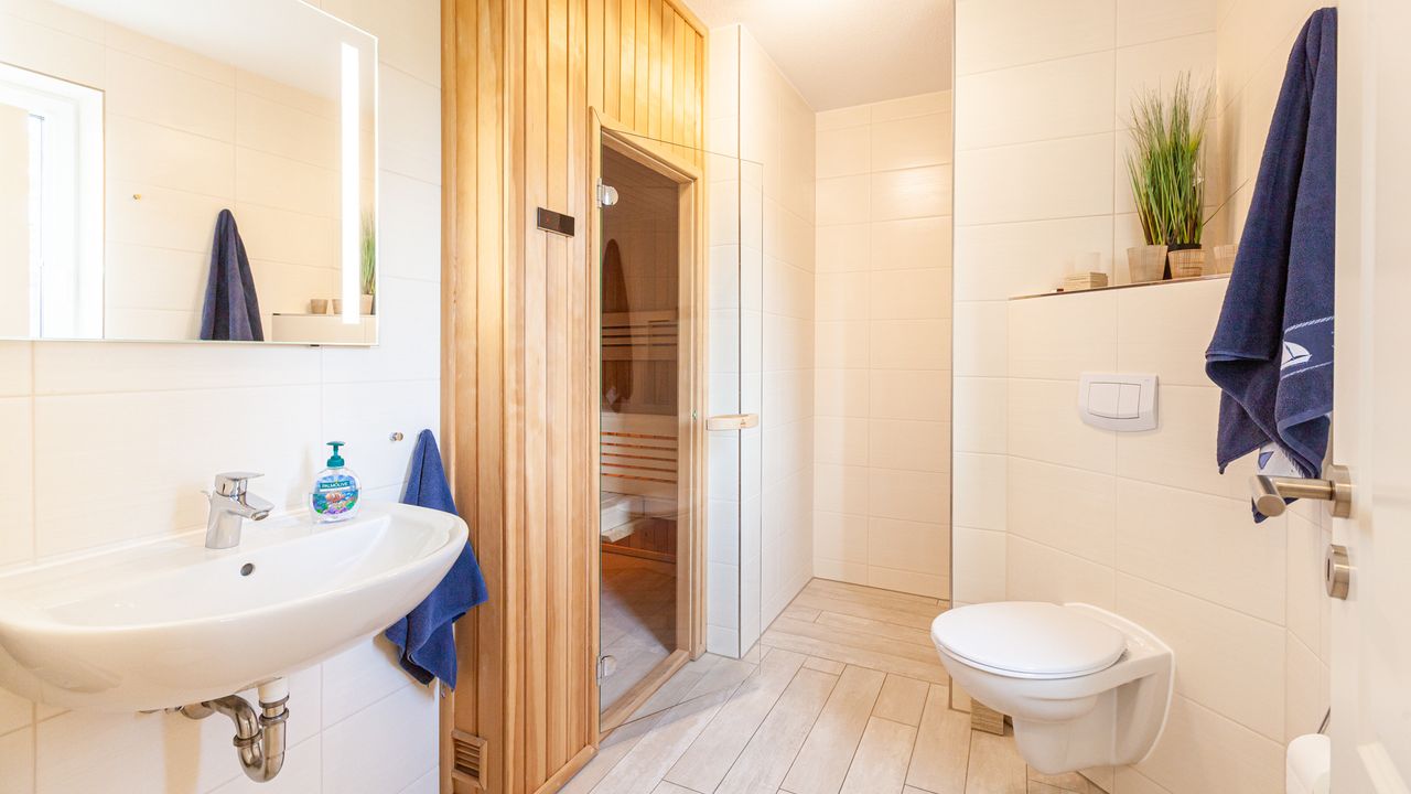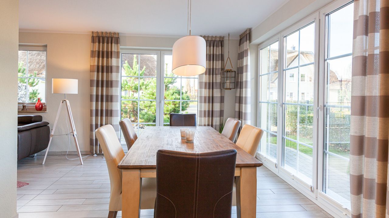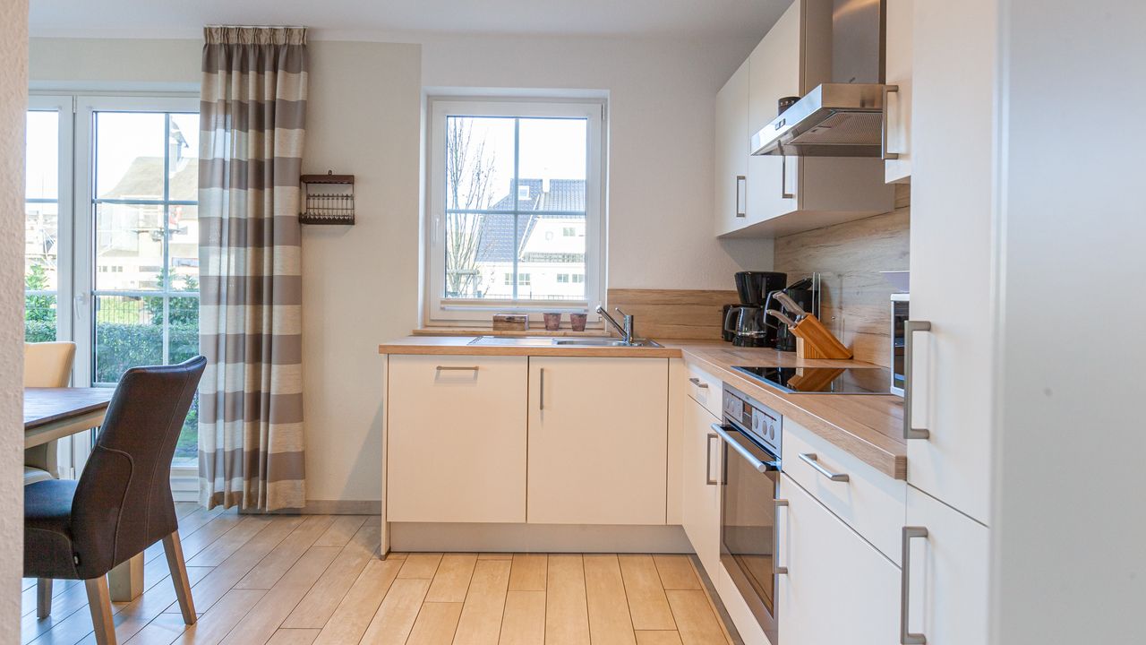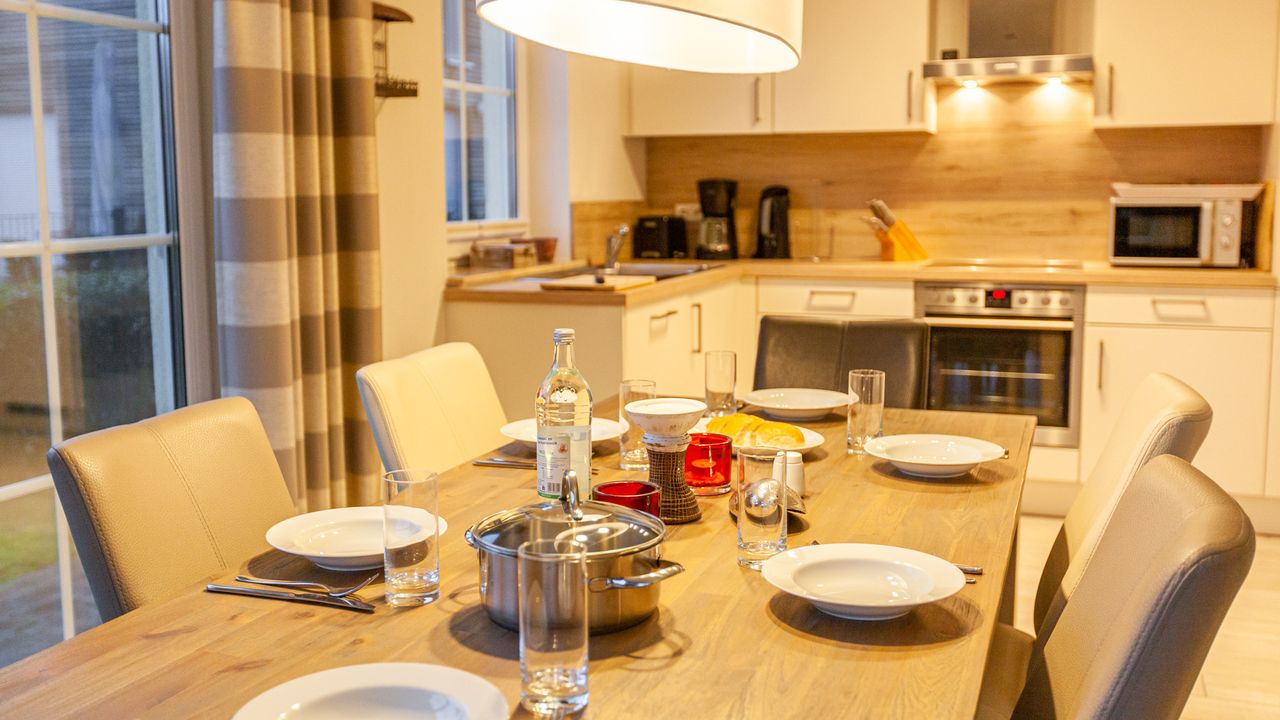 Die exklusiv, komfortabel und modern eingerichtete Doppelhaushälfte bietet auf ca. 105 qm Wohnfläche Platz für max. 6 Personen ...... und ist ausgestattet mit drei Schlafräumen (1x1 Doppelbett, 1x1 Doppelbett , 1x2 Einzelbetten) jeweils mit zusätzlichen Verdunklungsmöglichkeiten, einem Wohnbereich mit Kamin und einer Küchenzeile (Mikrowelle, Cerankochfeld, Backofen, Kühlschrank mit Gefrierfach, Spülmaschine, Kaffeemaschine), zwei Bädern (1 x bodengleiche Dusche / WC und Sauna,