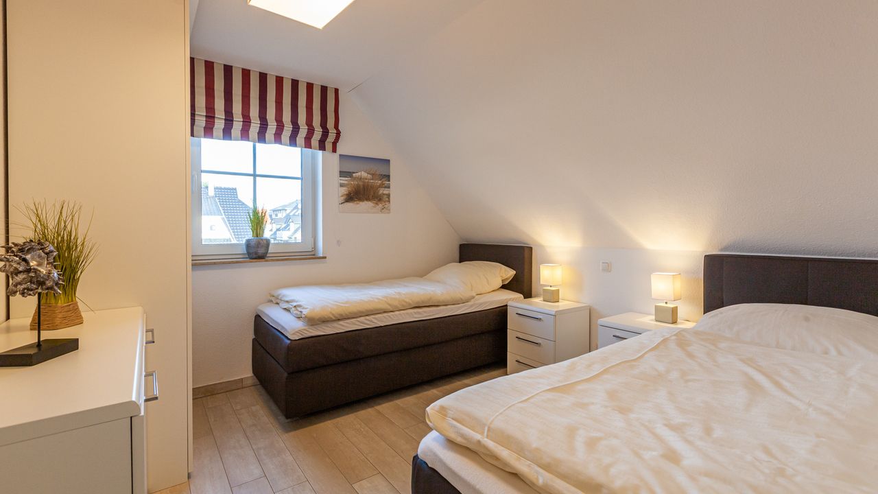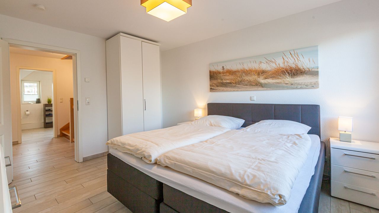 1 x bodengleiche Dusche / WC). Zur weiteren Einrichtung gehören zwei LCD-TV´s mit SAT-TV und WLan im ganzen Haus, Fußbodenheizung und Fliegenschutzgitter, Waschmaschine, Wäschetrockner, ein Kinderreisebett und Kinderhochstuhl. Eine Terrasse mit Gartenmöbeln, ein Grill sowie ein eigener Garten. Zwei Pkw-Stellplätze, ein Fahrradabstellraum, stehen Ihnen zur Verfügung. Die Entfernung zum Strand beträgt ca. 900 Meter und zum Zentrum sind es ca. 10 Minuten Fußweg. Ein Kinderspielplatz befindet sin in der näheren Umgebung. Haustiere (Hund, Katze, etc.) sind in diesem Haus nicht gestattet.