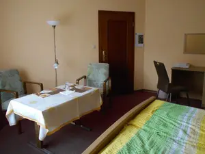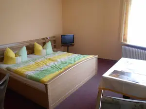 Das ca. 20 m² große Doppelzimmer liegt im Erdgeschoss des Haupthauses. Das Doppelzimmer ist mit einem Doppelbett, Kleiderschrank und TV-Gerät eingerichtet. Das Badezimmer (Dusche und WC räumlich getrennt) befindet sich auf dem Flur. Weitere Angaben: Bettwäsche, Handtücher und Frühstück sind im Preis inklusive.Beschreibung der Unterkunft