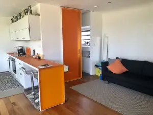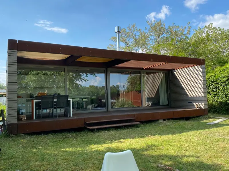 Ihr außergewöhnliches Hideaway befindet sich direkt am See und liegt im Elsass - 15 Minuten von Baden Baden entfernt. Der Außenbereich: Verschiedene Sitz- und Liegebereiche laden zum Relaxen und Sonnen ein. Wer lieber im Schatten entspannen will, der kann die Holzterrasse nutzen oder unter den alten Bäumen im Garten einen kühlen Platz finden. Große Fensterschiebetüren eröffnen den Weg in den Garten und lassen in geöffnetem Zustand Innen- und Außenbereich miteinander verschmelzen. Wohnbereich: hier befindet sich ein vollverglaster Wohnraum mit Küchenzeile, ein Wohnzimmer und Schlafzimmer. Das Badezimmer mit Dusche liegt im hinteren Bereich. Unsere Gäste können den Tag mit einem faszinierenden Blick über den See beginnen. Ein echtes Highlight! Der große Esstisch eignet sich hervorragend für entspannte Abendessen oder gemütliche Spieleabende. In der Küche stehen Nespresso Maschine inklusive Kapseln und ein Grundstock an Gewürzen, Ölen und Lebensmitteln zur freien Verfügung. Ideal für gemütliche Abende ist das Wohnzimmer. Bequeme Sitz- und Liegemöbel können auch mal schlechtes Wetter entschädigen.Beschreibung der Unterkunft