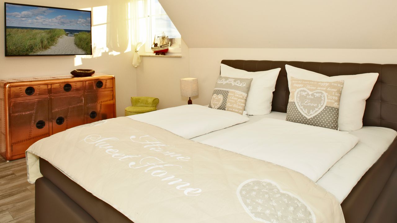 Unser individuell eingerichtetes Ferienhaus wurde 2016 neu erbaut. Großzügig geschnittene und lichtdurchflutete Räume mit Möbeln aus indonesischem Schiffsholz, handgemalten Bildern mit Motiven der Ostsee und vieles mehr wartet darauf, von Ihnen entdeckt zu werden. Für Kinder und Individualisten haben wir eigens einen maritimen Schlafboden eingerichtet. Alle Räume sind mit LED-TV ausgestattet. Die Schlafzimmer sowie die Küche sind mit Fliegengitter ausgestattet. Auf der 60m² großen Terrasse können sie morgens mit Freunden oder der Familie ein ausgedehntes Frühstück genießen. Abends können Sie bei einem Gläschen Wein den Lieblingsfilm auf dem Outdoor-TV sehen. Alles ist für sie vorbereitet. An kühlen Tagen steht ihnen die hauseigene Sauna zur Verfügung. Ein lauschiges Kaminfeuer lädt zudem zum Verweilen ein.