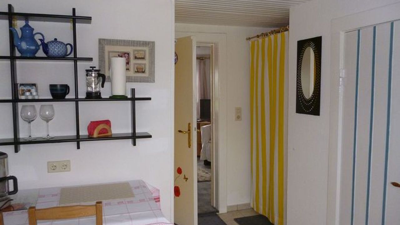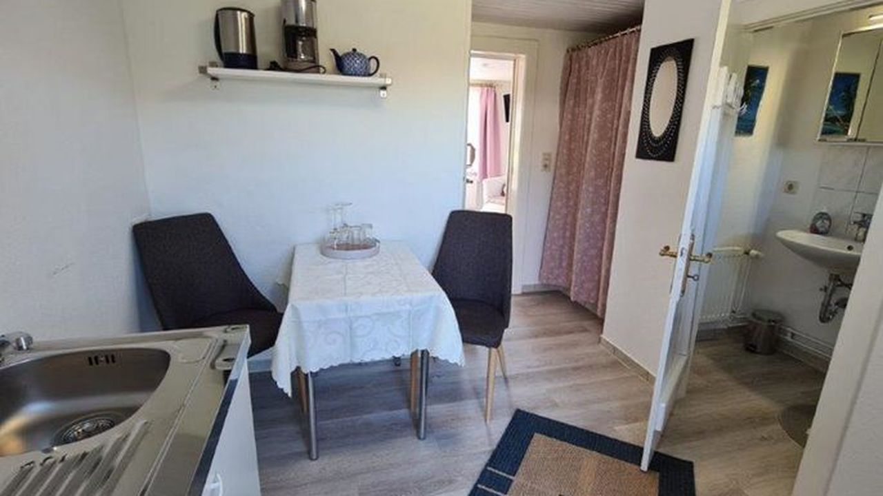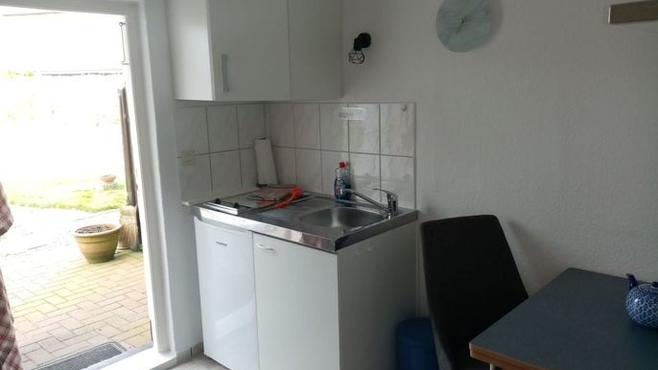 Ferienwohnung 26 (Zweiraum-Appartement )für 2 Personen. Kombinierter Wohn-Schlafraum mit Doppelbett, kleine Pantryüche mit Sitzgelegenheit, Dusche, WC und Waschgelegenheit.Die Ferienwohnung befindet im EG. Terrasse im Außenbereich und Liegewiese. Kostenloser Parkplatz am Haus.