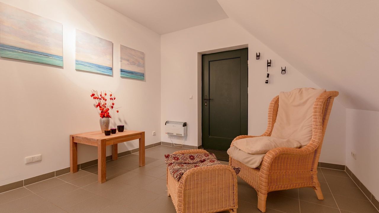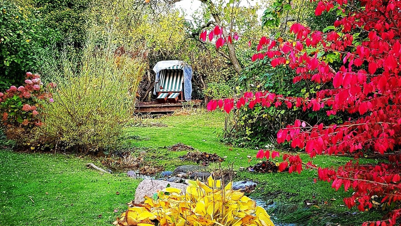 Natürlich können Sie von dieser Wohnung ebenfalls den schönen, großen Garten ausgiebig nutzen. Direkt vor Ihrer Treppe stehen Gartenmöbel und Liegestühle nur für Sie bereit. Außerdem gibt es überall im Garten verteilt Sitz- und Ruheoasen, die Sie ebenfalls gerne nutzen können.