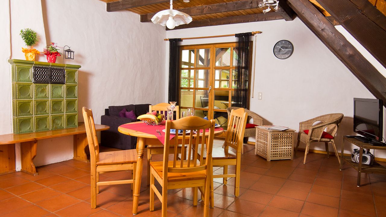 Beheizt wird die Ferienwohnung über einen gemütlichen Kachelofen (die Befeuerung erfolgt durch uns von unserer Wohnung aus) oder über eine Fußbodenheizung.