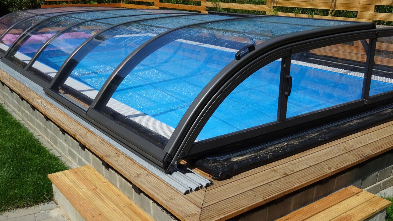 Überlauf-Pool-Komplettset mit Überdachung, Schwimmbecken 3,00 x 6,00 x 1,50m und Pool-Gegenstromanlage.