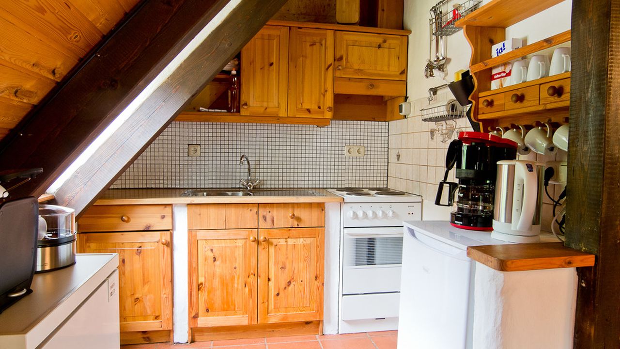 In der komplett ausgestatteten Küche finden Sie außer einer Mikrowelle mit Grillfunktion selbstverständlich auch eine Spülmaschine. Wir haben die Küche mit den für das tägliche Leben notwendigen Kleinigkeiten bestückt - Sie finden hier neben Kaffeemaschine, Wasser- und Eierkocher z.B. auch Zucker, Salz, Kräutersalz, Pfeffer, Paprika, Essig/Öl, Kaffeefilter, Kaffee, Früchtetee, Küchenrolle, Spülmittel und Spülmaschinentabs.