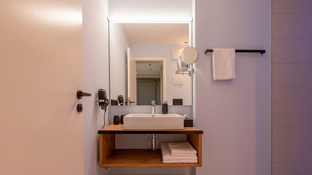 - Eigenes Bad mit Regendusche, Waschtisch, Haartrockner, Kosmetikspiegel