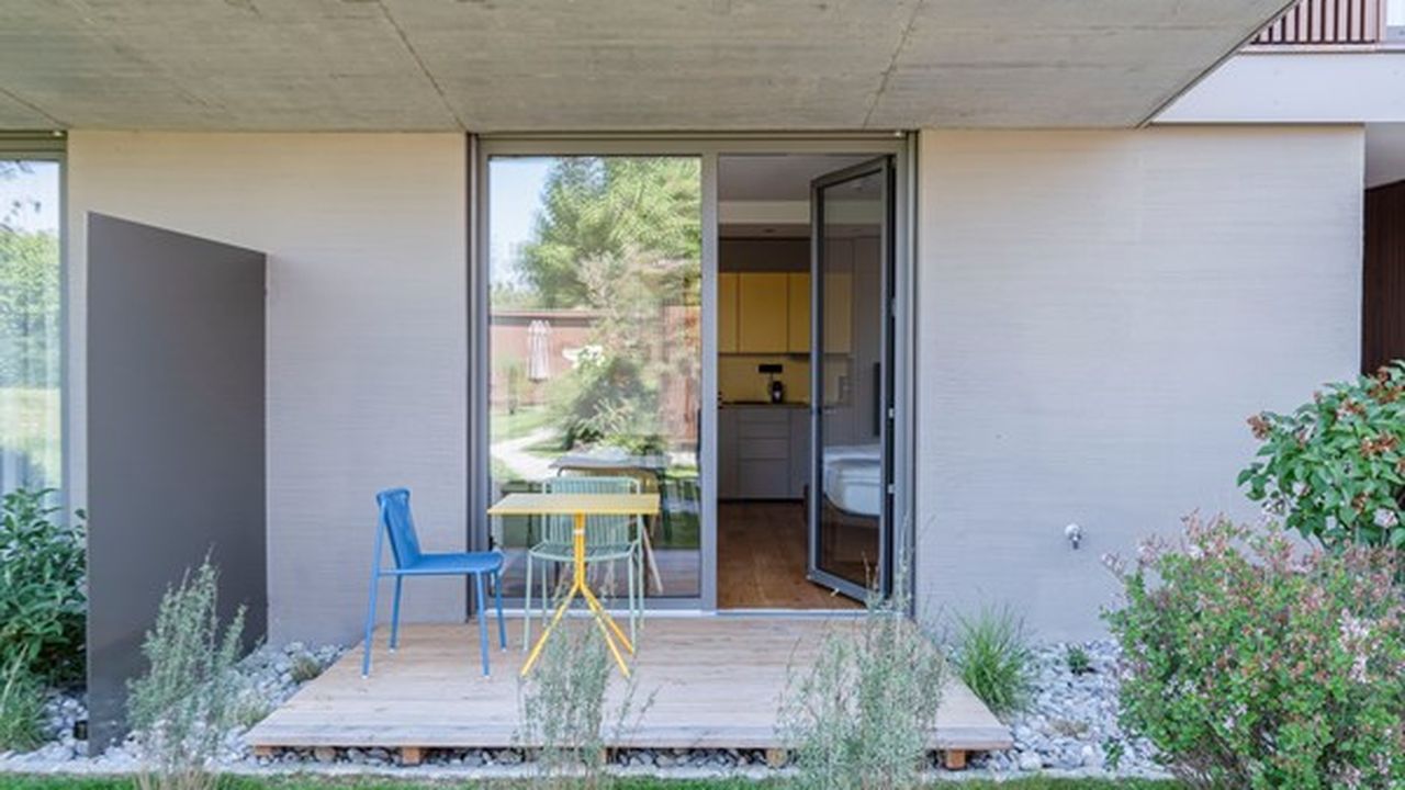 Das Apartment ZUM GARTEN befindet sich im Erdgeschoss des Neubaus.