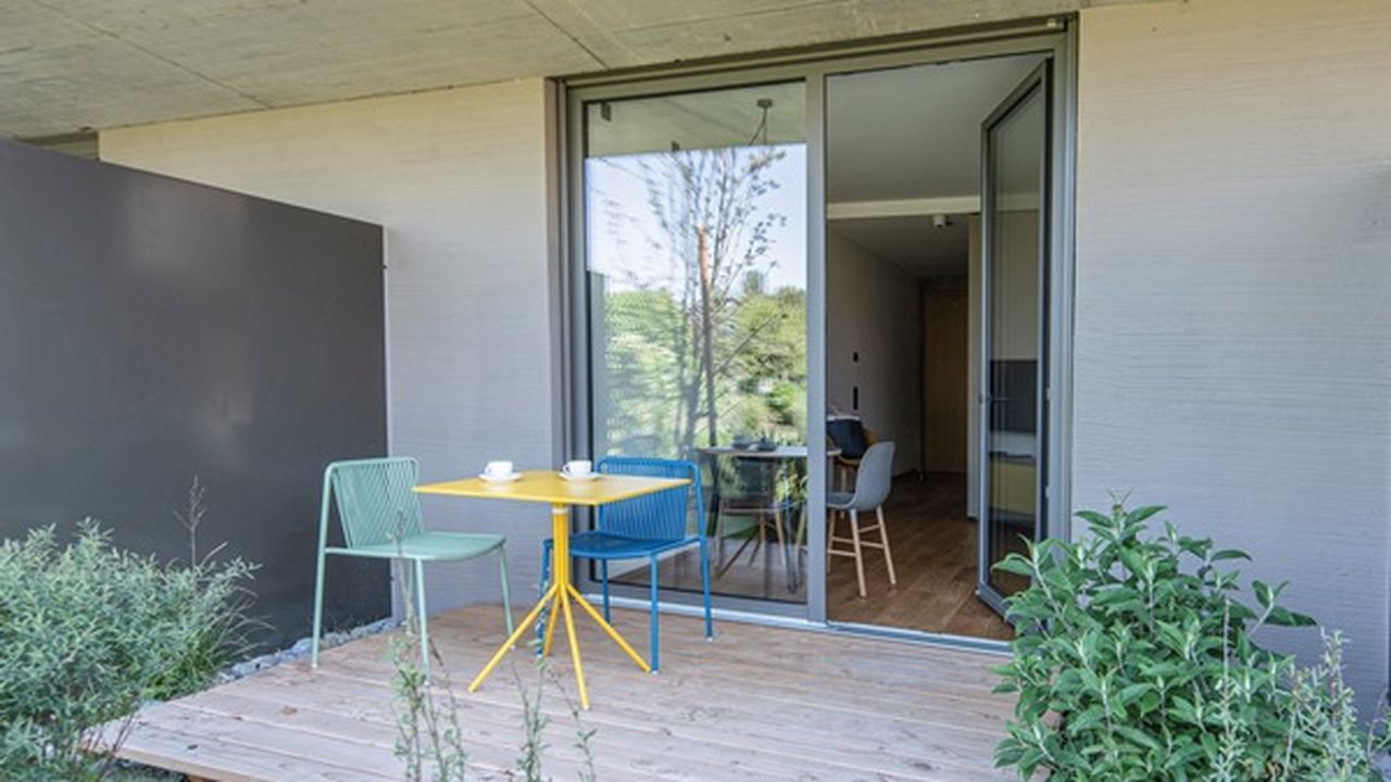 Das APARTMENT IM GRÜNEN befindet sich im Erdgeschoss des Neubaus.