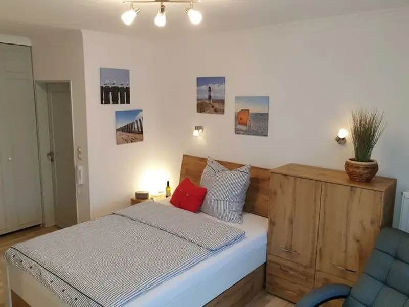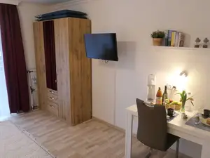 • 1-Raum-Appartement (25 qm) in der 2. Etage des Mehrfamilienhauses (Lift) mit Balkon,• 1 Doppelbett (140 x 200 cm),