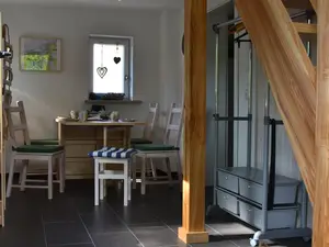 Beschreibung Schlafsituation: Im Schlafzimmer mit Doppelbett kann ein Babyreisebett untergebracht werden. Im angrenzenden kleinen Schlafzimmer befinden sich 2 Stapelbetten. Im Wohnbereich (OG), ist das Sofa zu einer Schlafcouch wandelbar. Der kleine Vorraum im Obergeschoss bietet einen gemütlichen Platz zum Lesen und Spielen.Im Nebengebäude wurde ein Aufenthalts-, Trocknungs- und Umziehraum speziell für Angler eingereichtet. Das Betreten der Ferienwohnungen mit Angelkleidung ist nicht gestattet. Eine Gefriertruhe für Fische steht bereit.