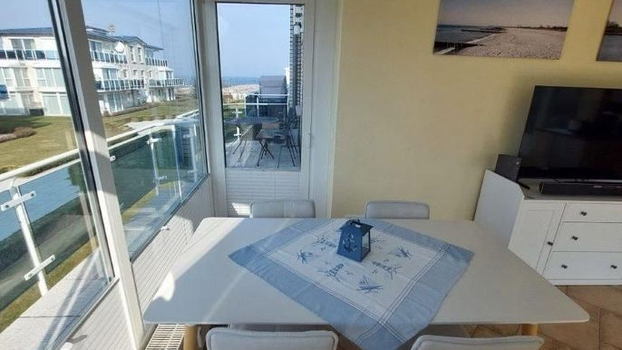 - in der 1. Etage/Aufzug - möblierter Balkon mit Meerblick (Westlage) - Autostellplatz Poel 29 - Tiefgarage (Einfahrtshöhe 2,15 m) - Erstausstattung Bettwäsche und Handtücher inklusive - Fahrradkeller - Waschmaschine und Trockner gegen Gebühr - Nichtraucherappartement! Keine Haustiere! - WLAN-Bereitstellung kostenfrei (ohne Gewähr) - Wohnbereich mit integrierter Küche und Essplatz - Küche - 4 Kochplatten, Mikrowelle, Kühlschrank und Geschirrspüler - 1. Schlafzimmer mit Doppelbett und Kommode - DU/WC- in der 1. Etage/Aufzug