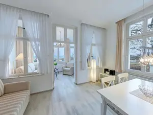 Direkt an der Strandpromenade mit herrlichem SEEBLICK! Chices und geräumiges 2 - Zimmer - Apartment mit moderner, eleganter und guter Ausstattung. Separates Schlafzimmer, große komfortable Küche mit Essplatz, Duschbad, Veranda als Wohnraum mit direktem Seeblick, Südbalkon mit Sonne bis abends. Die Wohnung verfügt über einen Pkw-Stellplatz. In der Garage können Fahrräder und ähnliches untergestellt werden. Im Haus gibt es eine Sauna. Von der Villa Germania aus können Sie das Ortszentrum und die bekannte Ahlbecker Seebrücke in ca. 3 Minuten zu Fuß erreichen. Zum Strand sind es 50 m. Von Mai bis September ist ein Strandkorb im Tagespreis enthalten im Jahr 2025, ab 2026 nicht mehr.Direkt an der Strandpromenade mit herrlichem SEEBLICK! Chices und geräumiges 2 - Zimmer - Apartment mit moderner, eleganter und guter Ausstattung. Separates Schlafzimmer, große komfortable Küche mit Essplatz, Duschbad, Veranda als Wohnraum mit direktem Seeblick, Südbalkon mit Sonne bis abends. Die Wohnung verfügt über einen Pkw-Stellplatz. In der Garage können Fahrräder und ähnliches untergestellt werden. Im Haus gibt es eine Sauna. Von der Villa Germania aus können Sie das Ortszentrum und die bekannte Ahlbecker Seebrücke in ca. 3 Minuten zu Fuß erreichen. Zum Strand sind es 50 m.