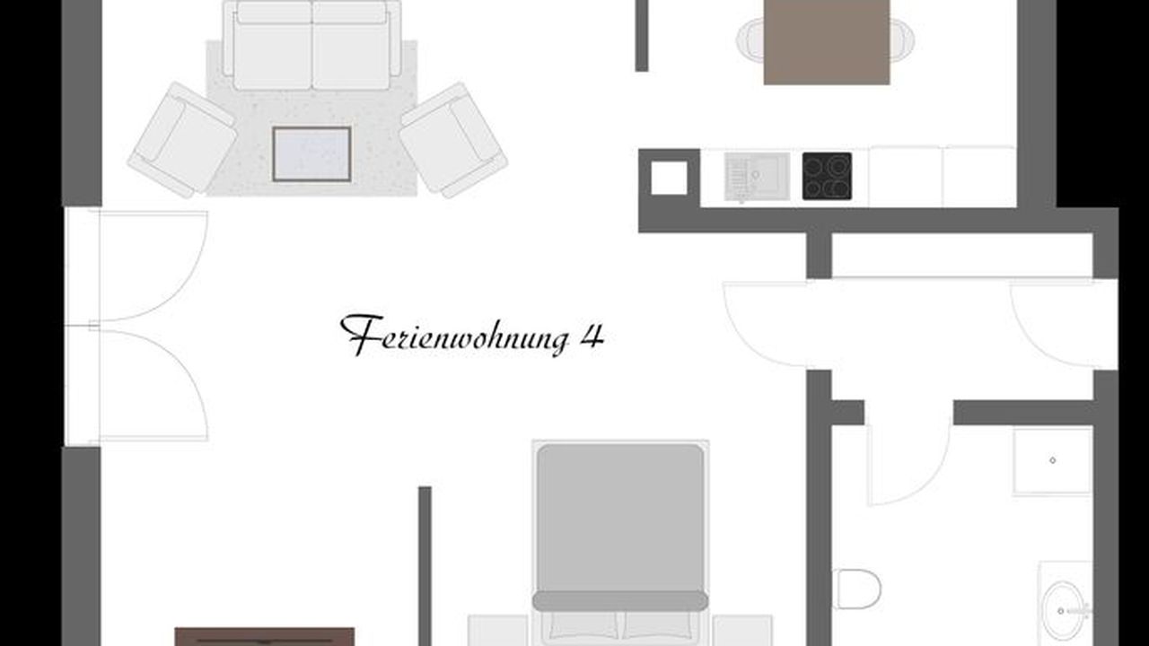 Ferienwohnung mit geräumigem Wohn-/Schlafzimmer, Küche, Dusche / WC, Kabel - TV, 2. Stock - Ostseite (45qm)Standardbelegung: 2 Erwachsene