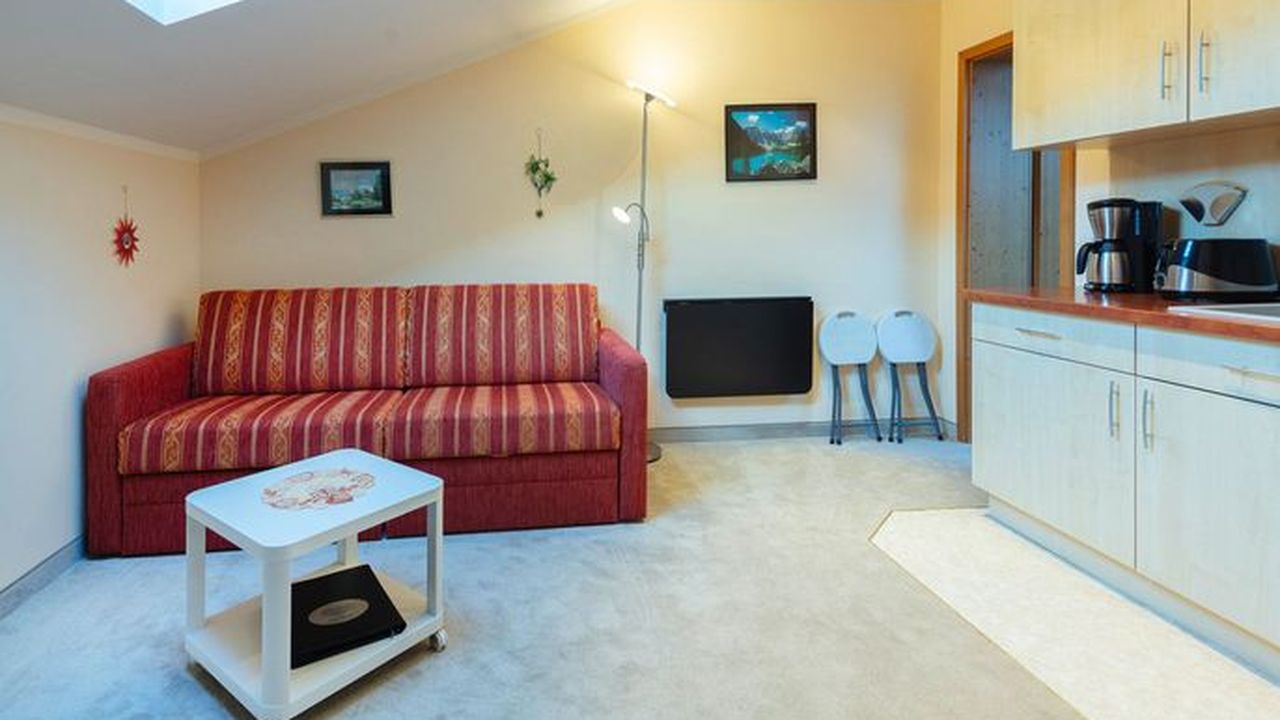 Mansardenzimmer mit Küche, Bad / Dusche / WC, Kabel - TV, 2. Stock - (25 qm)Ausziehcouch als Bett.