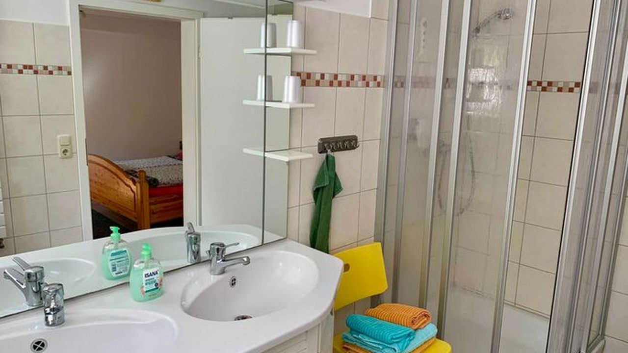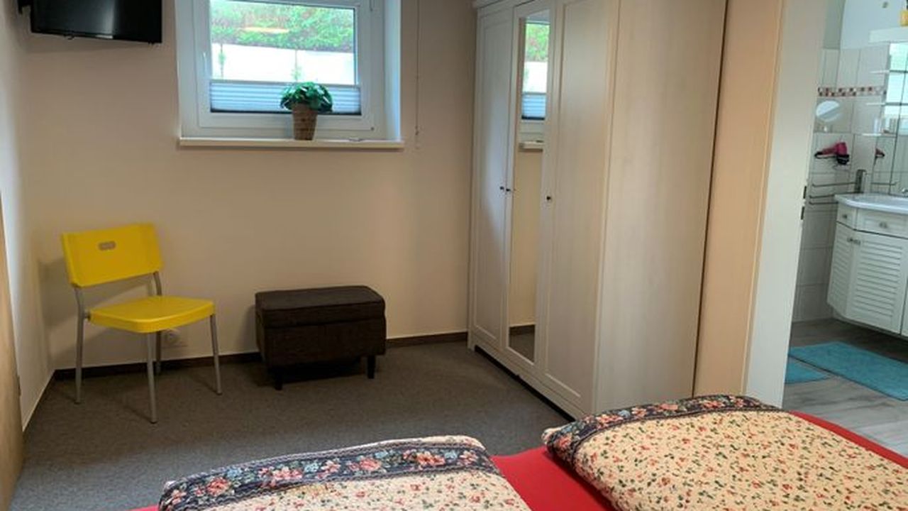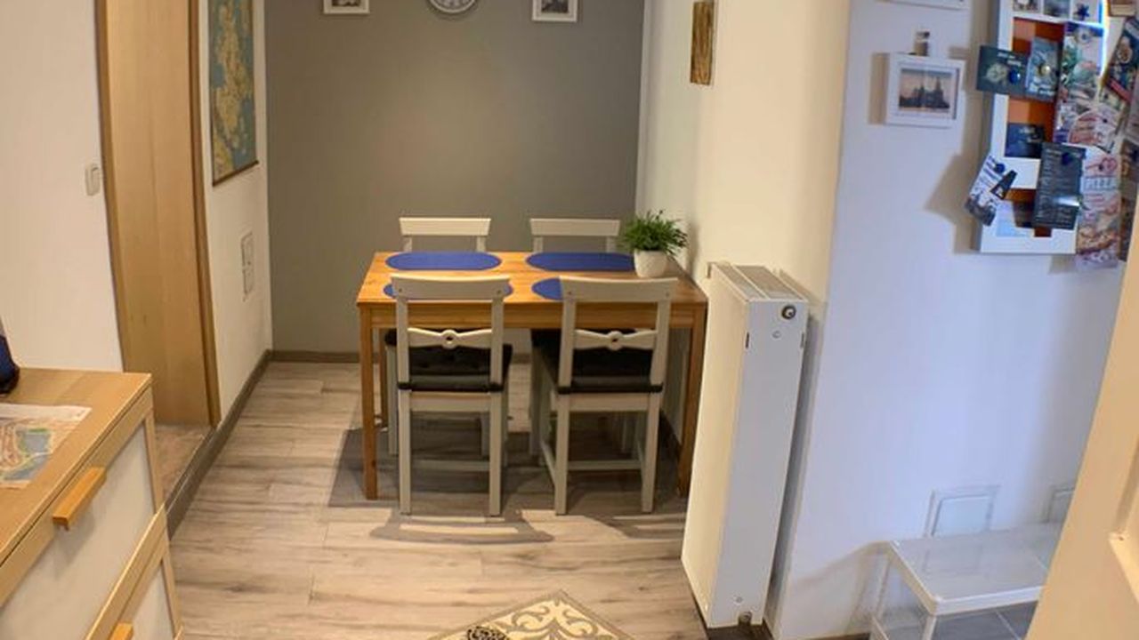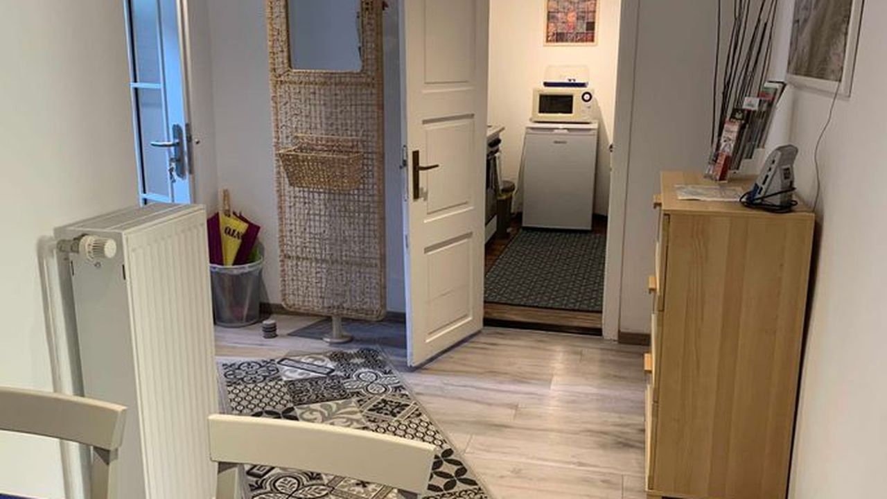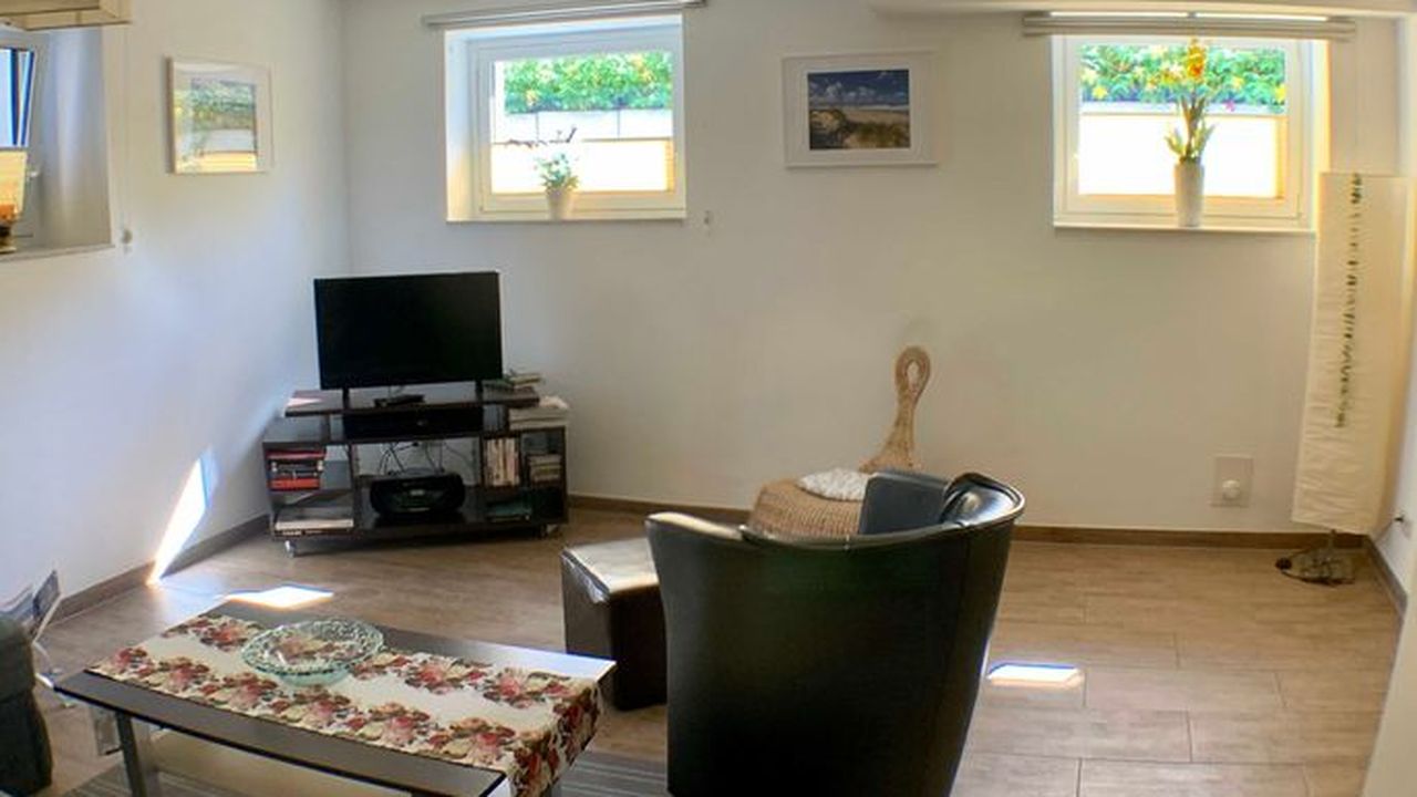 Unsere Ferienwohnung befindet sich im Souterrain und ist ca. 57 qm groß. Sie verfügt über ein Wohnzimmer, ein Schlafzimmer mit Doppelbett (1,80 breit), Esszimmer, eine kleine Küche und ein Bad mit Dusche/WC. Für die 2. Person kann eine Aufbettung auf der Schlafcouch im Wohnzimmer erfolgen. Das Schlafzimmer ist das Durchgangszimmer zum Badezimmer.***Zusätzliche Gebühren: 5% Übernachtungssteuer ist zusätzlich zu zahlen und wird im Voraus an den Vermieter überwiesen (weitere Infos folgen vom Vermieter).***