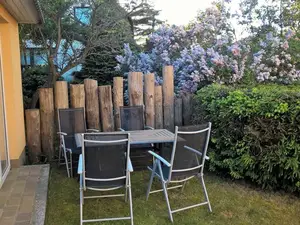 Die Ferienwohnung verfügt über ein Schlafzimmer mit Doppelbett, ein weiteres Schlafzimmer hat 2 Einzelbetten mit Ausziehmöglichkeit (Tandembetten) Kinderstuhl, Kinderbett (keine Kinderbettwäsche), eine Terrasse mit Gartenmöbeln steht zur Verfügung.Sonstiges