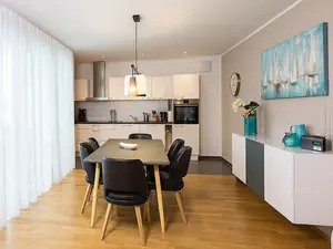In der voll ausgestatteten Küche finden Sie eine Kaffeemaschine, eine Spülmaschine und einen Essbereich. Eine Reihe von traditionellen deutschen Restaurants sowie internationalen Cafés und Bars erwartet nicht weiter als 15 Gehminuten vom Apartment entfernt gern Ihren Besuch.