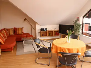 Auf dem sonnigen Balkon befinden sich komfortable Gartenmöbel. Die lichtdurchflutete Wohnung verfügt über ein Schlafzimmer mit einem Doppelbett. Für die dritte Person steht im Wohnbereich ein Schlafsofa bereit. Der Wohnbereich verfügt zudem einen SAT-TV und Radio. Die Küche ist komplett ausgestattet (Herd, Backofen, Geschirrspüler, Geschirr, Besteck, Wasserkocher, Toaster, Kaffeemaschine, Küchenwäsche und viele weitere Küchenutensilien).Das Badezimmer ist mit Haartrockner, Dusche und WC ausgestattet.