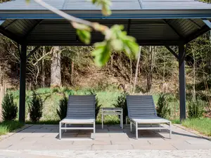 Eingebetet von Blumenwiesen liegt das aus massiven Fichtenstämmen neu erbaute Chalet in einem der schönsten Täler der "Wilden Rodach", im Naturpark Frankenwald. Es umfasst 3 abgeschlossene Schlafzimmer (2 Doppelzimmer und 1 Familienzimmer für 4 Personen mit 2 Doppelbetten) an die zwei großzügige Badezimmer angrenzen.Der edle Wohnbereich mit offener Küche, Kaminofen und großzügiger Sitzlandschaft bietet den Blick durch die nach Süden gerichtete Fensterfront auf die Außenterrasse. Direkt angrenzend befindet sich der Saunabereich mit Jakuzzi zur exclusiven Nutzung.