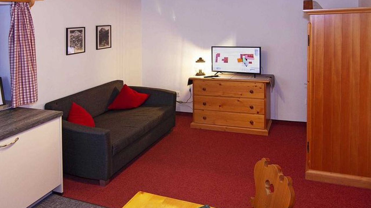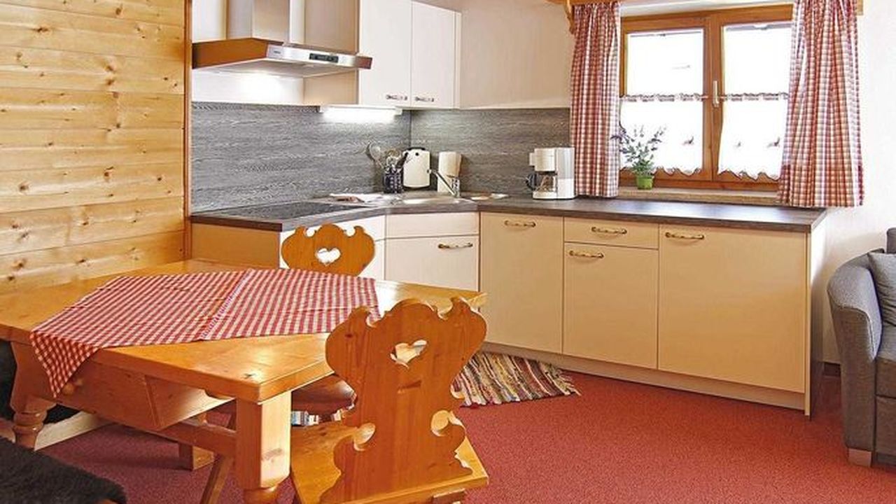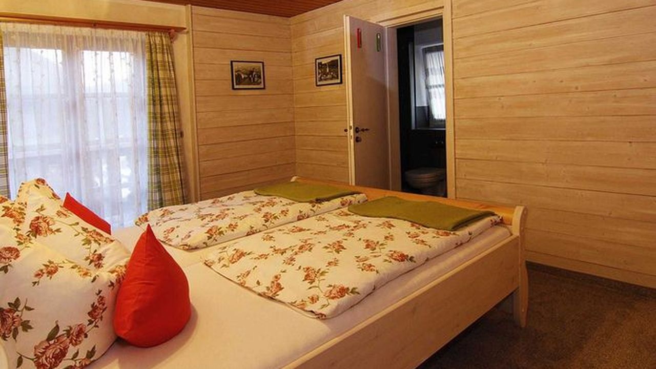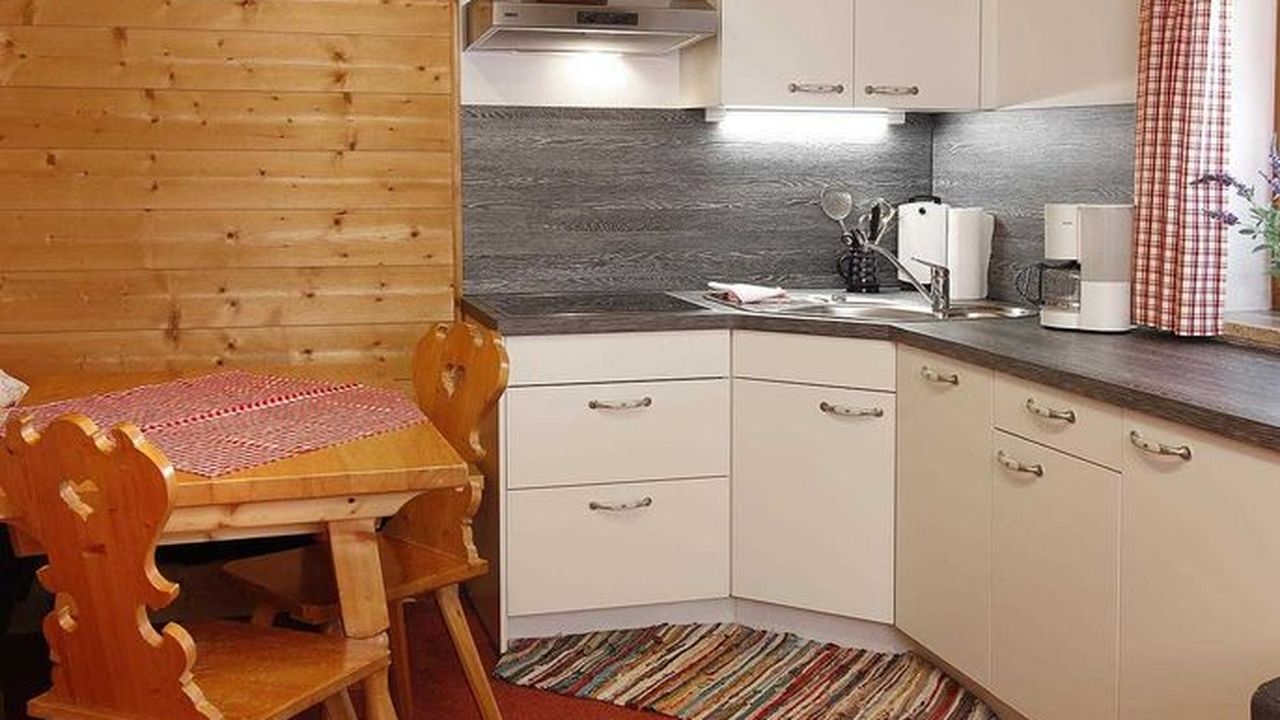 Kombinierte Bauernstube mit Küche und Schlafcouch für 2 Personen. Separates Schlafzimmer. Dusche und WC getrennt.