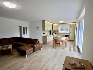 Die Ferienwohnung verfügt über eine sehr große helle Küche mit offenem Wohn- und Essbereich. Schauen sie beim Abendbrot dem Knistern des Feuers zu oder genießen Sie durch die großen Fenster die wundervolle Aussicht.