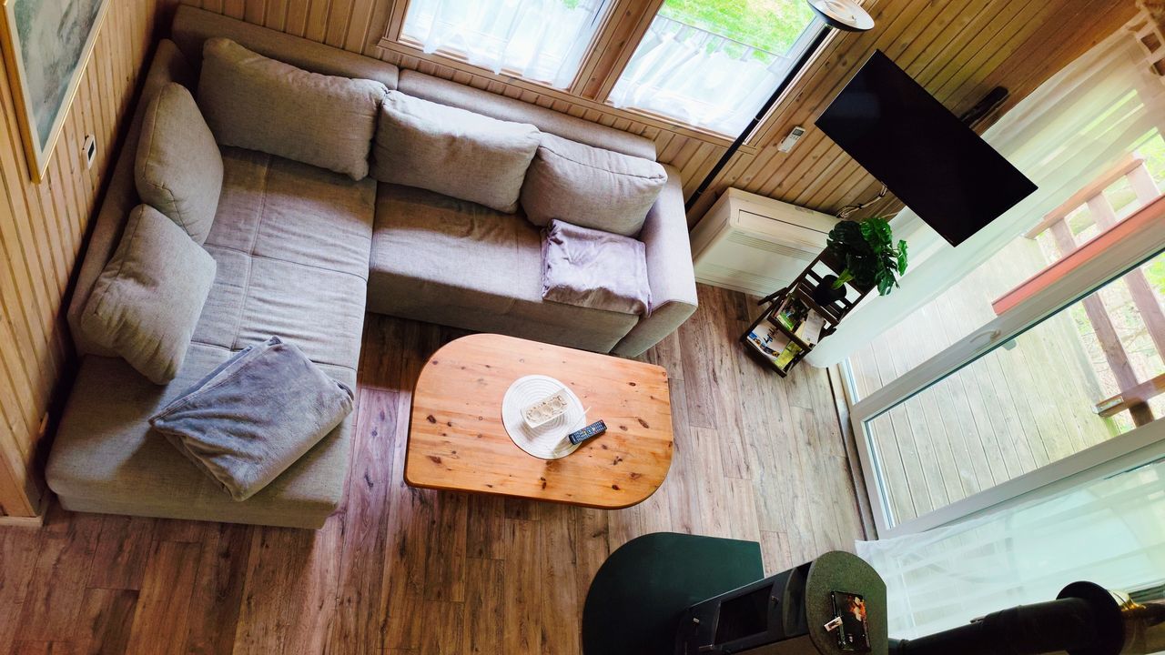 Eine Grundausstattung Brennholz, sowie Anzünder sind bereits im Ferienhaus vorhanden. Die Sitzlandschaft kann als zusätzliche Schlafgelegenheit genutzt werden.