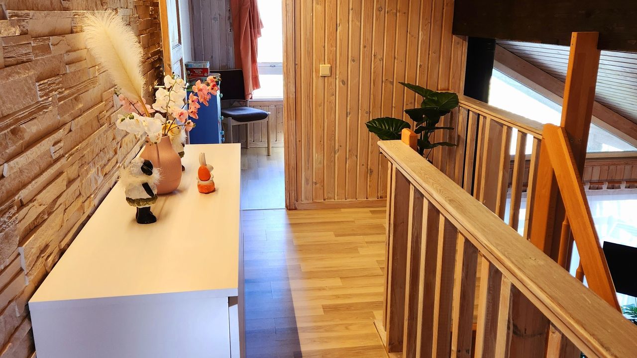 Vom hauseigenen Parkplatz erreichen Sie Ihr Ferienhaus. Dieses ist auf zwei Ebenen mit 3 separaten Schlafzimmern (2x mit Doppelbett, 1x Einzelbett), einem Wohnraum mit offener Küche, einem abgetrennten Flur sowie Badezimmer und Sauna ausgestattet. Den kostenlosen Internetzugang per Wlan können sie in Ihrem Ferienhaus, aber auch auf der Terrasse und Garten jederzeit nutzen.