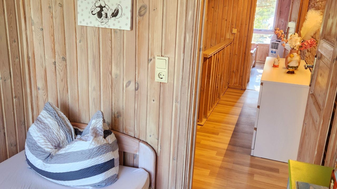 Die weiteren zwei Schlafzimmer (1x mit Smart-TV) befinden sich im Obergeschoss, die an eine schöne Anrichte angrenzen. Hier können sie sich zurückziehen und in aller Ruhe ein Buch lesen.