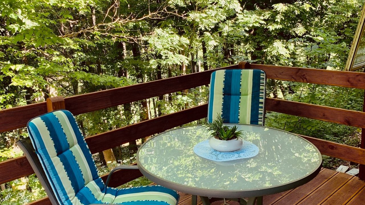 Vom Wohnraum haben Sie direkten Zugang auf Ihre wunderschöne Terrasse mit einem tollen Blick direkt in den Wald, die zum Verweilen einlädt. Es ist keine Seltenheit beim Frühstück oder beim Abendessen Rehe und Eichhörnchen zu beobachten.