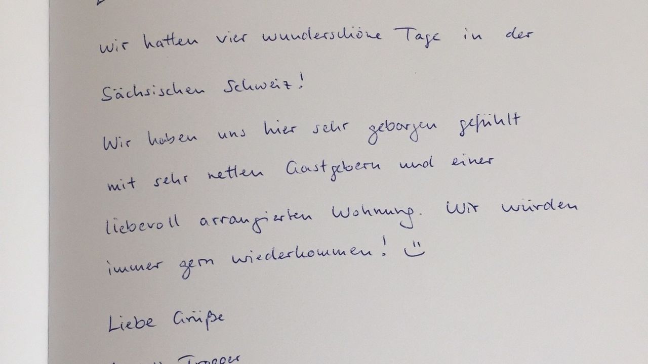 Liebe Gäste, wir und unsere 2 freundlichen Labrador Mädels möchten Sie in unserer neuen, schönen Ferienwohnung auf das Herzlichste begrüßen. Unser Haus befindet sich in waldreicher, ruhiger, ländlicher Gegend, am Stadtrand von Pirna. In kurzer Zeit erreichen Sie mit dem Auto wunderbare Wander- und Klettergebiete in der Sächsischen Schweiz. Einen Besuch in Dresden sollten Sie unbedingt einplanen, sowie einen Abstecher ins Osterzgebirge. Bei allen Fragen und sind wir Ihnen gern behilflich. Wir freuen uns auf Sie.Herzliche Grüße von Ihrer Familie Schmidt mit Emmi und Anni
