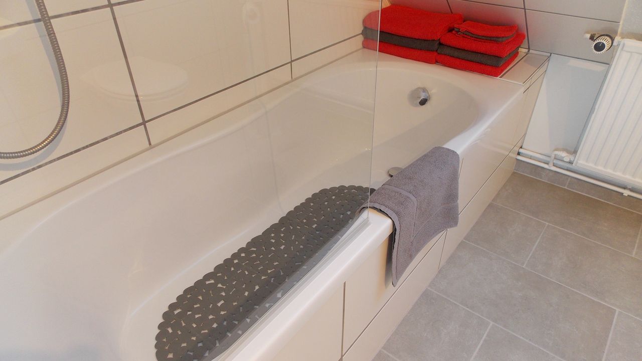 Ausstattung Bad (mit Tageslicht) Dusch-/Badewanne, WC und Waschbecken, Dusch-/Handtücher und Waschlappen (Erstausstattung) sind vorhanden und inklusive