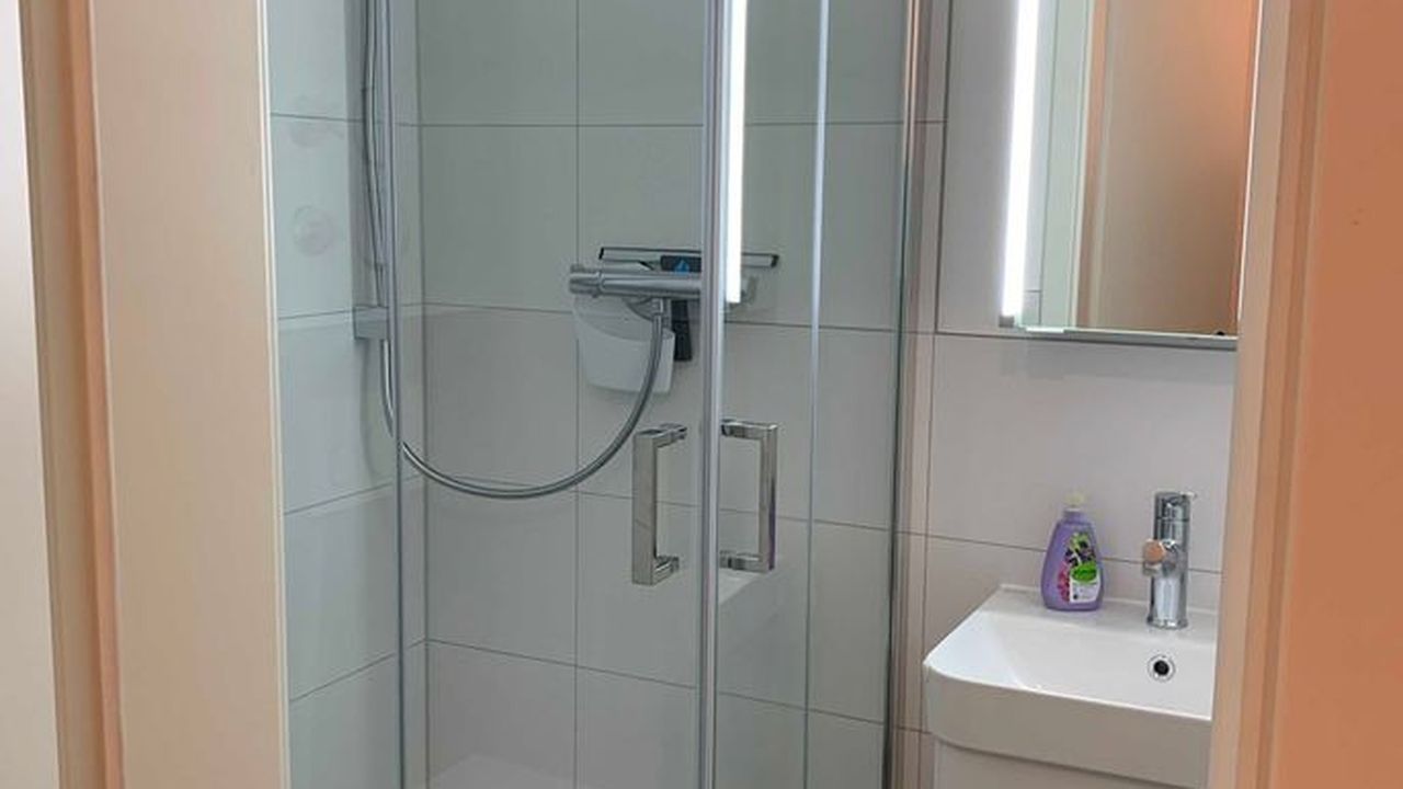 Ein Bäcker ist gleich gegenüber und es sind nur 200m bis zum nächsten Supermarkt.