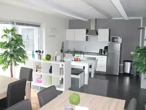Das modern & mit dem Charme einer alten Druckerei eingerichtete Gästehaus erstreckt sich auf 4 Schlafzimmer, 2x2 und 2x4 Einzelbetten. Einem im Loft-Stil gehaltenen & komfortablen Wohnbreich, einer voll ausgestatteten und geräumigen Wohnküche mit Herd, Backofen, Spülmachine, XXL Kühlschrank mit Gefrierfach, Mikrowelle, Toaster, Wasserkocher, Tassimo Kaffeemaschine, einem Duschbad mit WC und einem seperatem WC.