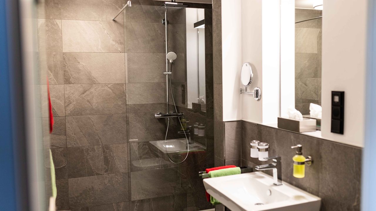 Helles Doppelzimmer mit rustikal-schickem Flair. Helle Eichenmöbel und ein bequemes Doppelbett mit fester Matratze und mit roten und grünen Farbakzenten heißen Sie willkommen. Das angrenzende Badezimmer verfügt über eine ebenerdige Dusche, Handtuchwärmer, Föhn und separaten Kosmetikspiegel. Auf dem Schreibtisch finden Sie die digitale Gästemappe: Lassen Sie sich von Tipps rund ums Wandern oder E-Biken inspirieren. Setzten Sie sich auf den Balkon und schauen Sie in die weite Schönheit des Sauerlandes.Beschreibung der Unterkunft