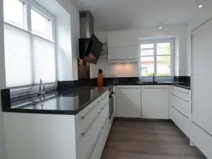 Moderne Ferienwohnung mit Sauna und 3 Schlafzimmern für 6 Personen. Anreise ab 12.00 Uhr.Das Ferienhaus Katharina hat 2 moderne Ferienwohnungen mit Sauna und 3 Schlafzimmern für 6 Personen. Ob Smart-TV im Wohnzimmer und in allen Schlafzimmern, Fussbodenheizung, edle Küchen, schicke Bäder mit Regenduschen oder das soundstarke Internet-Radio. Die Ausstattung überzeugt. Die Sauberkeit ebenso. Als Eigentümer kümmern wir uns persönlich um die Ferienwohnungen. Genießen Sie den gemütlichen Wohn-Essbereich, die große Terrasse oder einfach die Möglichkeit, dass Sie 4 Smart-TVs in dieser Wohnung haben und jeder von Ihnen mit Netflix, etc. online gehen kann. Für Ihre Fahrräder ist ebenso ausreichend Platz, wie für Ihr Auto. Ferienwohnung 1 ist die linke Eingangsseite.