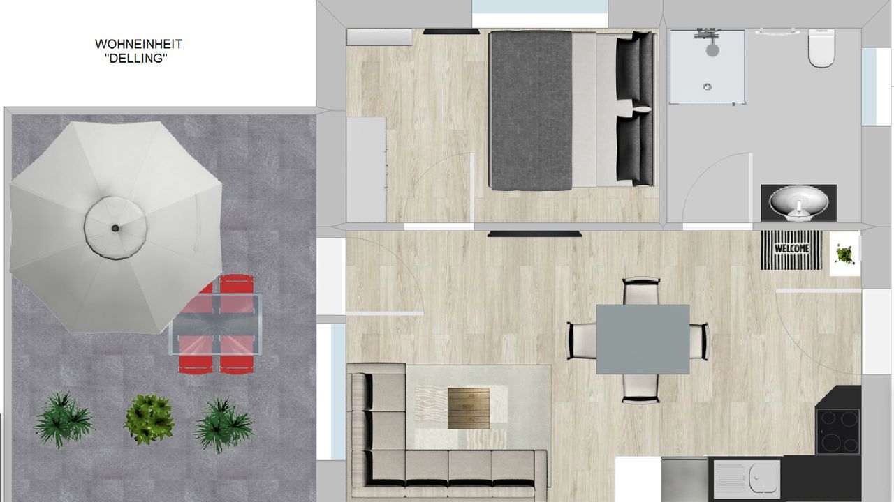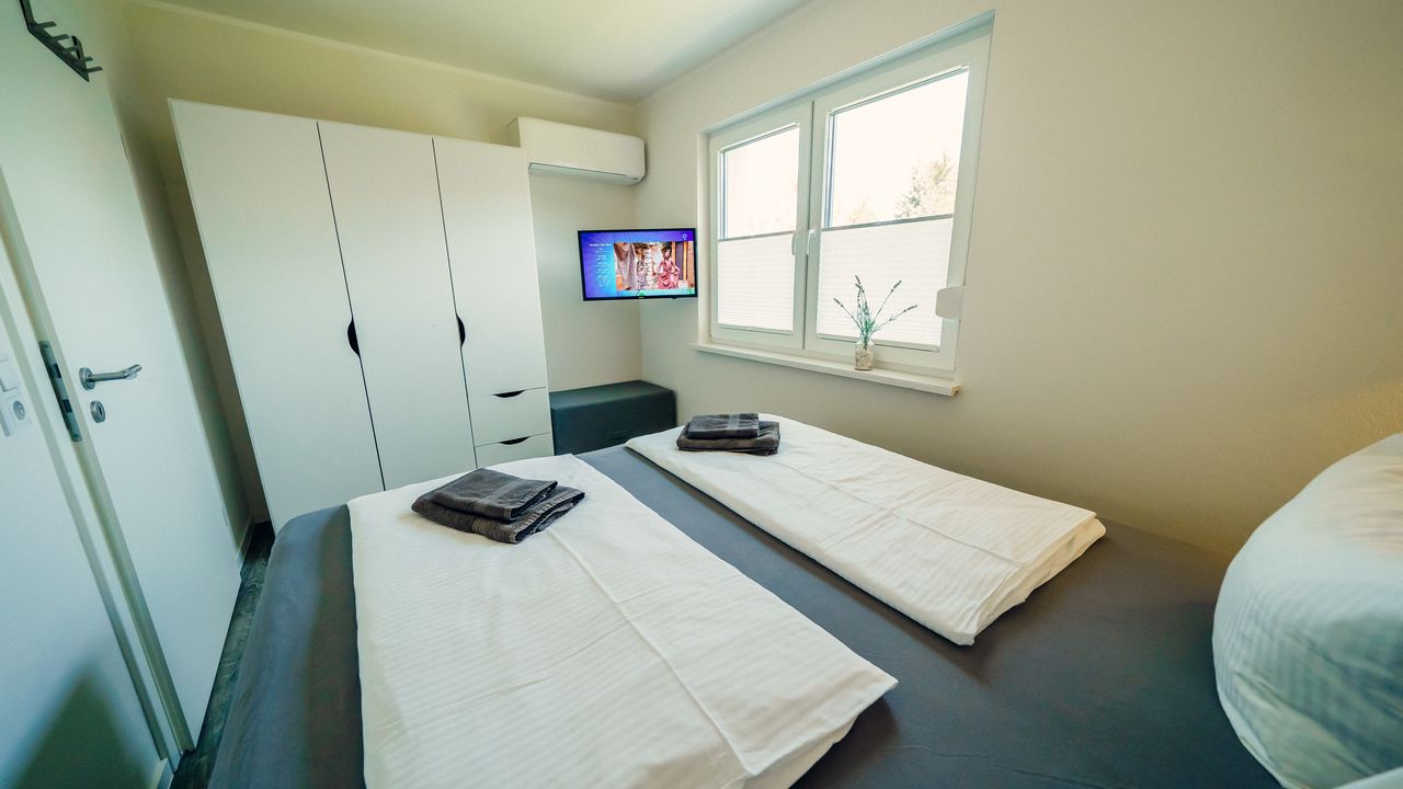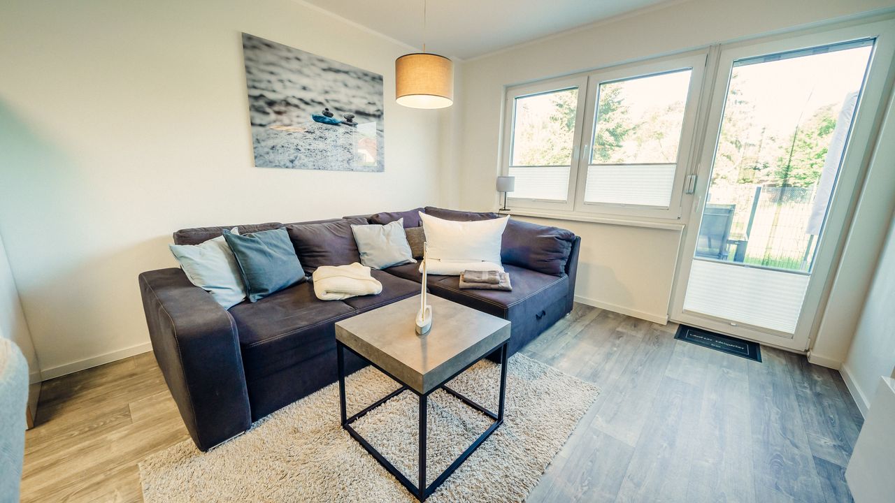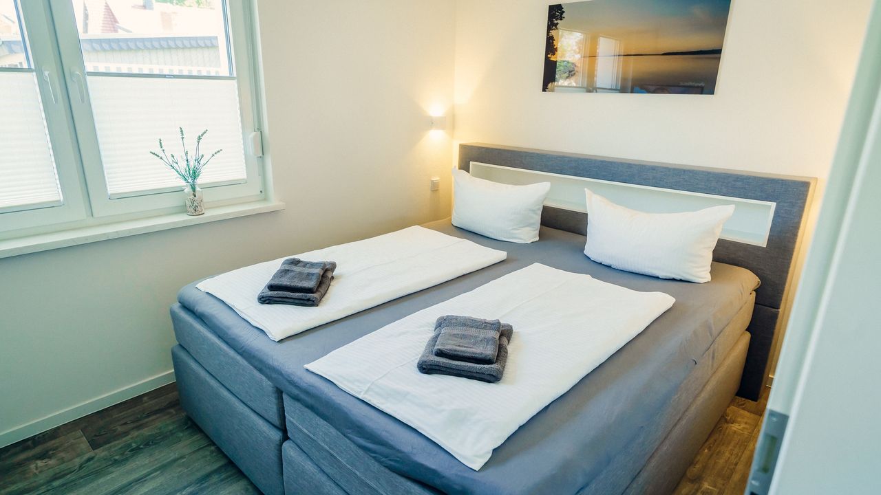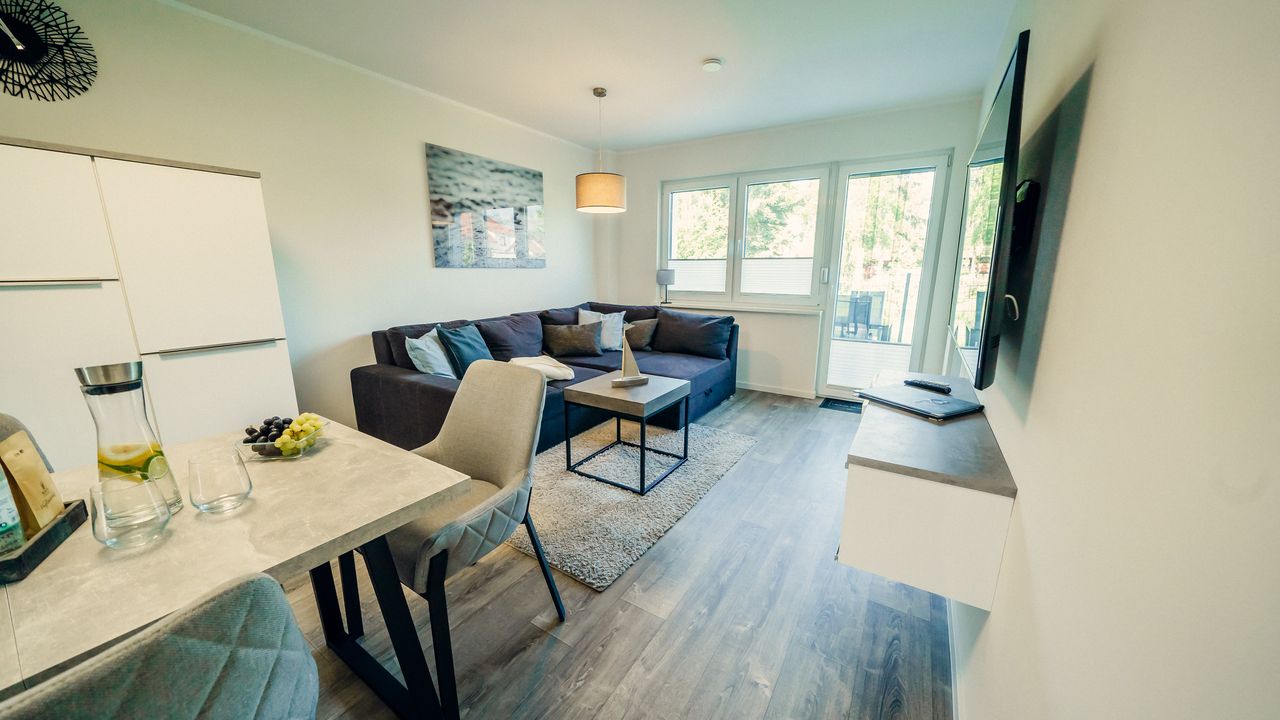 Die puristischen und hochwertig eingerichteten Wohnungen Berlioz und Delling umfassen jeweils eine Wohnküche, ein Bad mit ebenerdiger Dusche und ein Schlafzimmer mit Smart-TV und Boxspringbett. Die Wohnzimmer bieten eine Aufbettung für 2 weitere Personen auf einem Boxspringsofa, sodass die Wohnungen problemlos jeweils 4 Schlafplätze bieten.